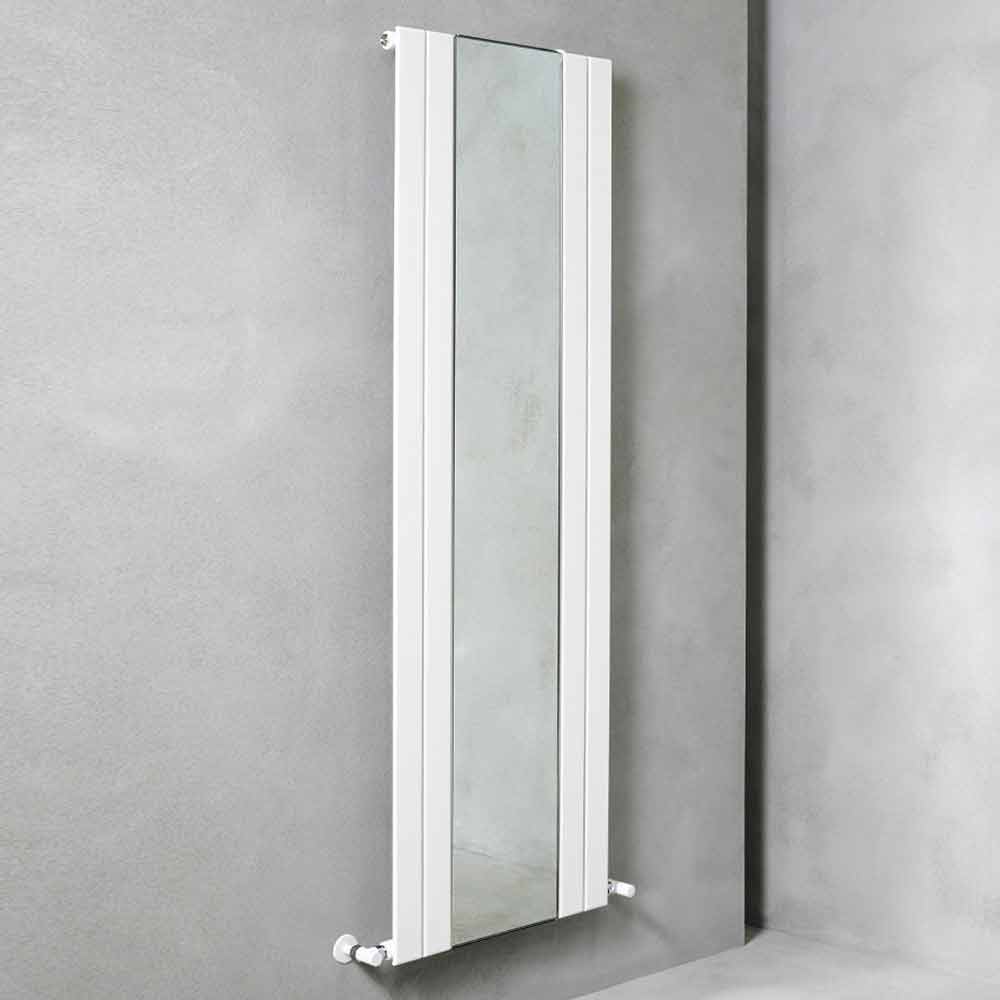 Radiador de pared hidráulico de diseño vertical en acero con espejo, fabricado en Italia.