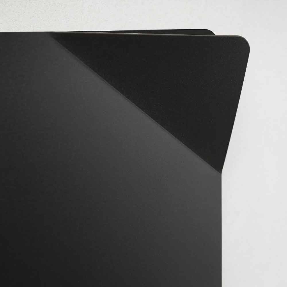 Disponible en diferentes acabados además de los presentes en el menú desplegable; la solapa inferior es siempre en gris negro, RAL 7021.