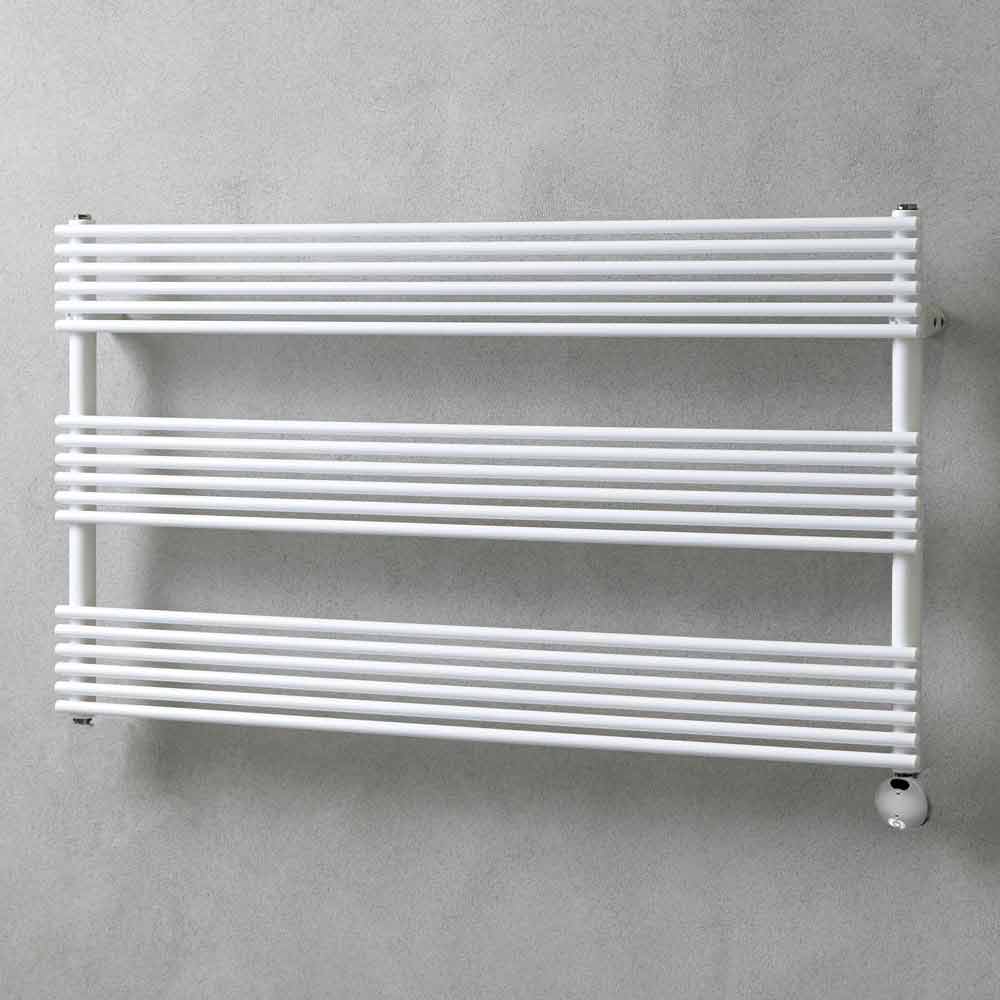 Radiador toallero eléctrico de diseño horizontal fabricado en Italia.