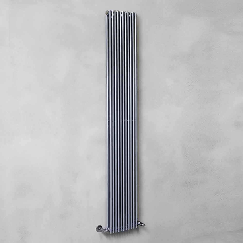 radiador está formado por tubos verticales de 16 mm de diámetro y colectores de 35 mm de diámetro, para un diseño simple y atemporal, muy versátil.