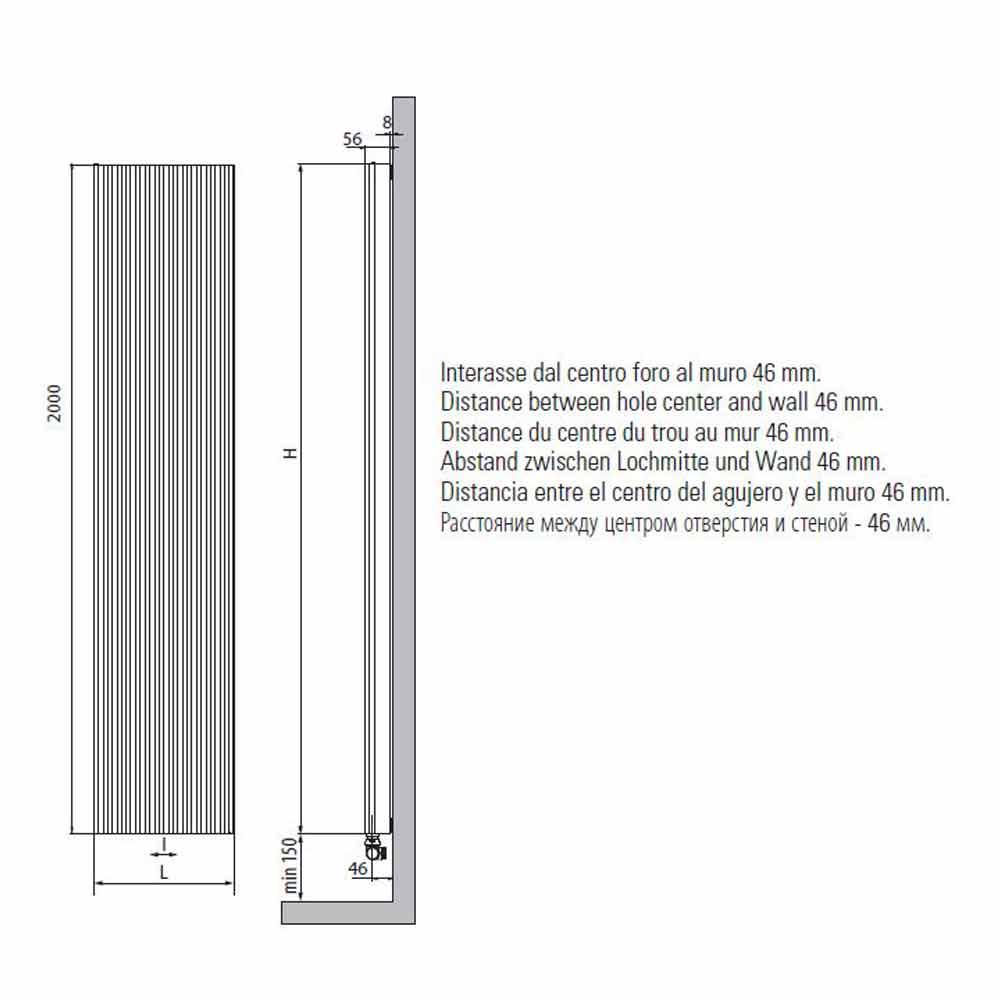 - H 2000 x L 420 x Inter. 50 mm x Salida w (Δt50 *) 900; Rendimiento w (Δt30 *) 461; Rendimiento w (Δ26 *) 390;