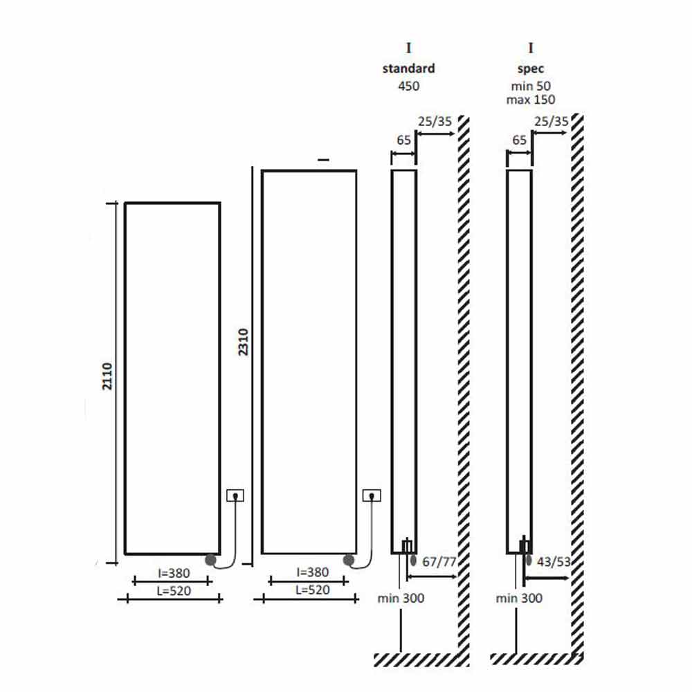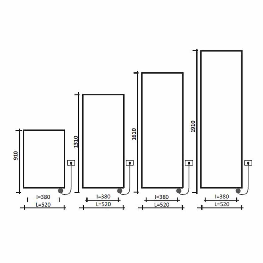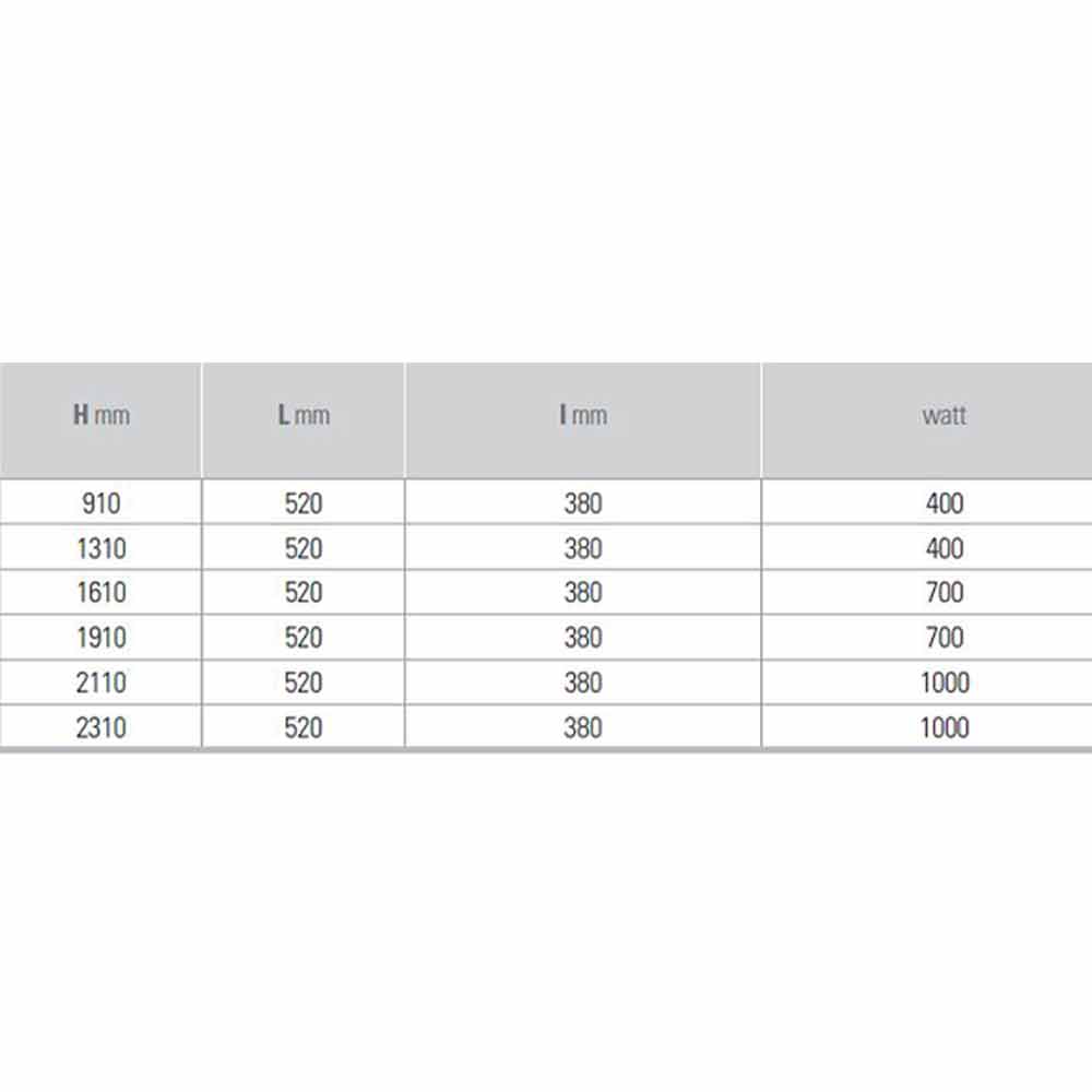 A la altura hay que añadir el termostato de 110 mm. Fuente de alimentación monofásica de 230 voltios. Disponible en diferentes acabados además de los del menú desplegable.