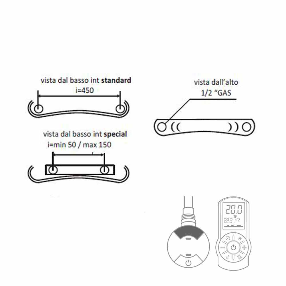 Se incluye la resistencia eléctrica con infrarrojos equipada con control remoto estándar, cable de 1200 mm con enchufe schuko y un suplemento de glicol para ser utilizado como anticongelante e inhibidor de óxido para la protección del sistema.