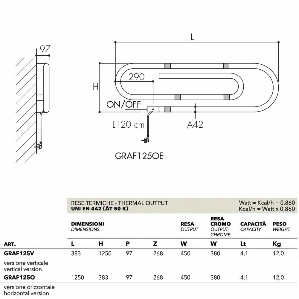 Radiador eléctrico de diseño con acabado cromado Graffetta Materiales