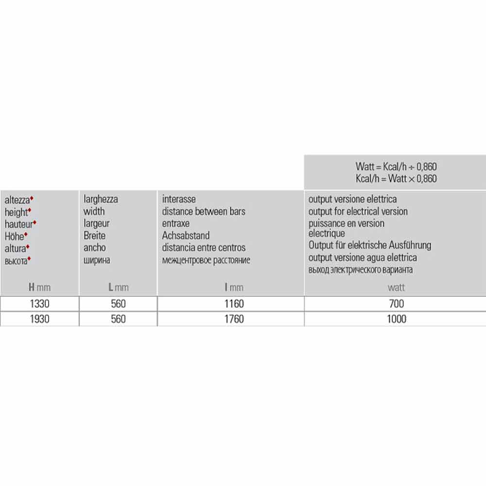 A la altura hay que añadir el termostato de 110 mm. Caja termostática blanca de serie para radiadores blancos; cromado para los radiadores de colores y acabados en acero inoxidable. Fuente de alimentación monofásica de 230 voltios.