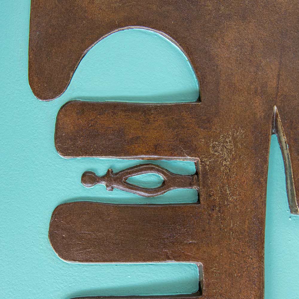 Radiador eléctrico fabricado con tapa de polvo de mármol reciclado sin necesidad de cocinar, modelado, lijado y pintado a mano únicamente con acuarelas y con un molde del "arco de hierro" de la góndola en acabado corten.