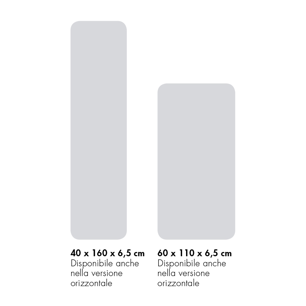 NB: el radiador está diseñado para montaje vertical u horizontal, especificar el montaje elegido al realizar el pedido. El radiador está disponible en una amplia gama de combinaciones de colores posibles. Termostato magnético inalámbrico incluido.