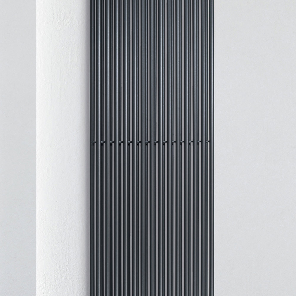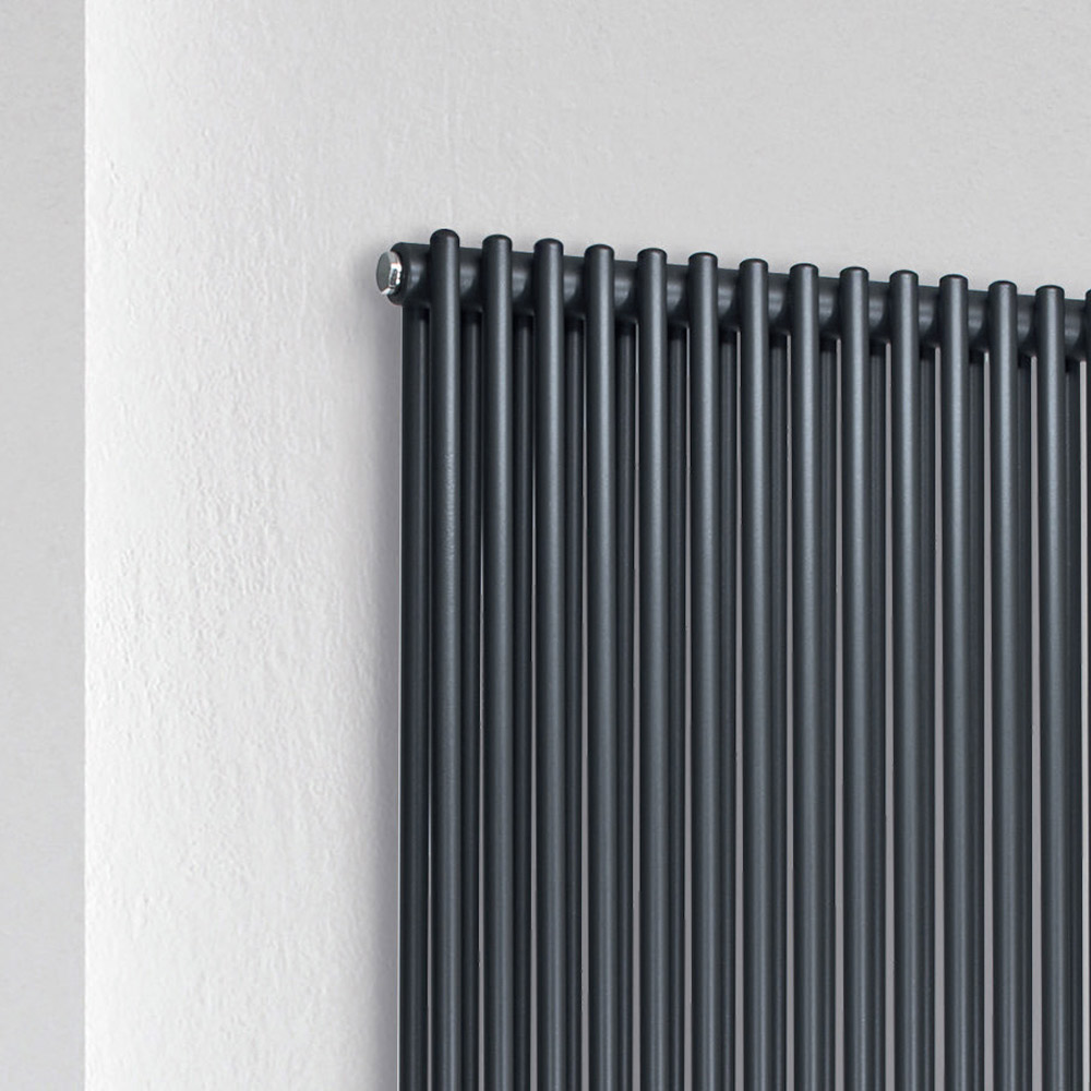 Radiador hidráulico en acero al carbono con acabado GRMS formado por una doble serie de elementos verticales de 1,6 cm de diámetro soldados a colectores horizontales de 3,5 cm de diámetro. Totalmente fabricado en Italia con kit de fijación a la pared, válvula de ventilación y tapón ciego incluidos . Cada etapa de producción se lleva a cabo en una fábrica cerca de Treviso, a pocos kilómetros de Venecia, donde la calidad es el objetivo constante y perseguido. Calidad como sinónimo de extrema atención al detalle y elección de los materiales más fiables . Así nació este radiador de puro diseño y funcionalidad en su máxima expresión.