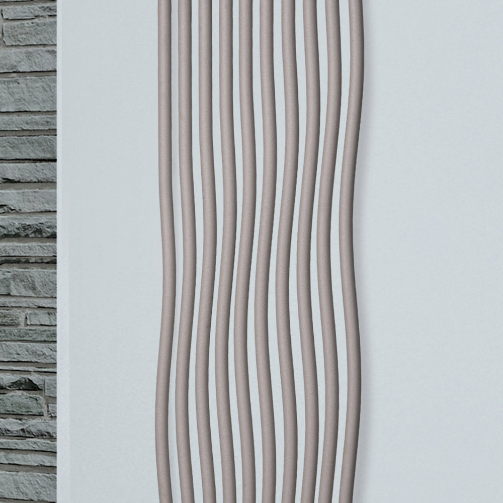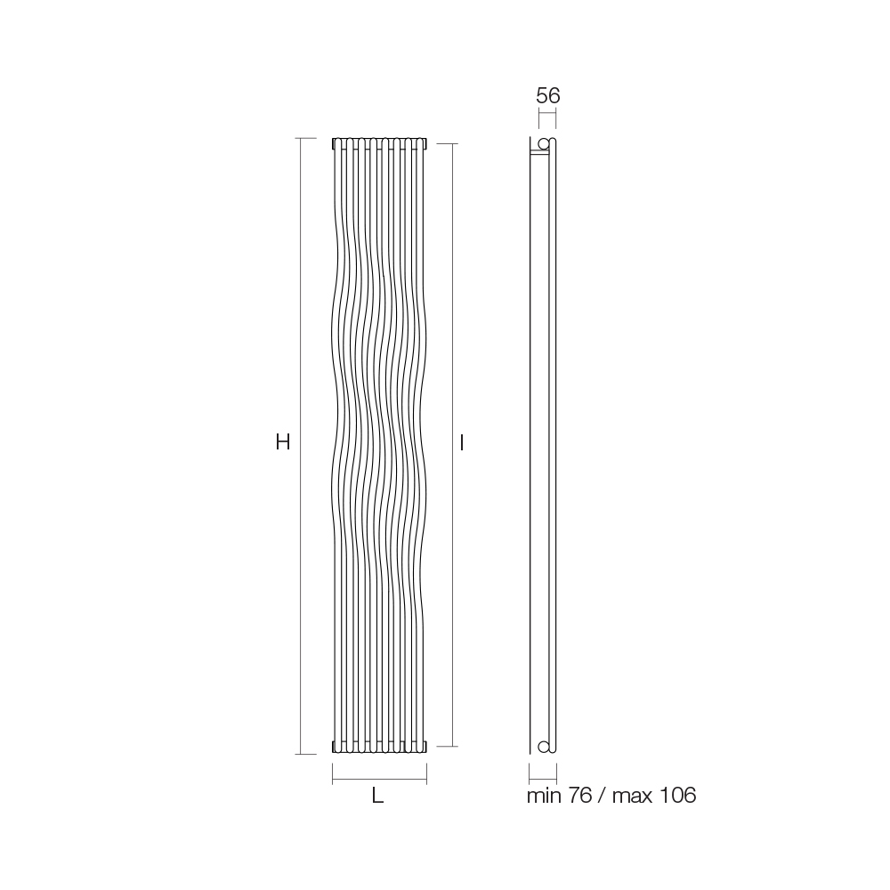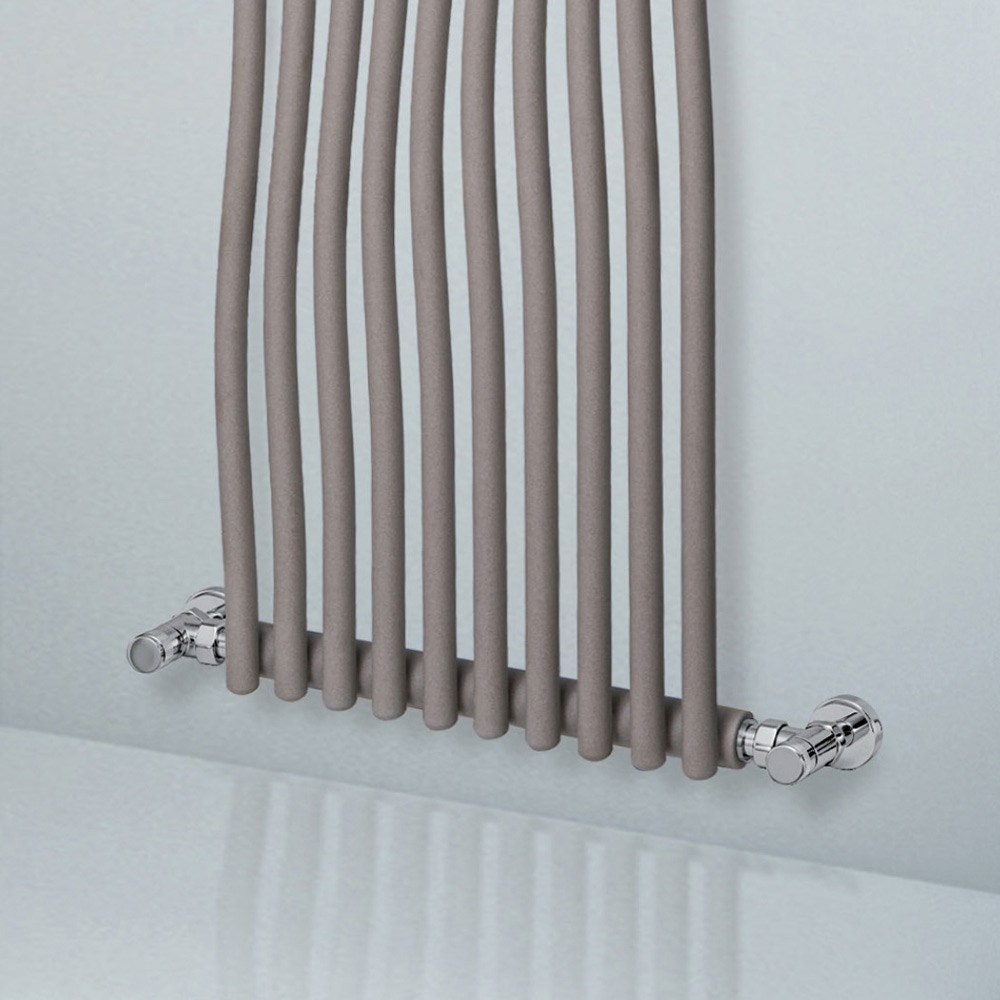 Radiador hidráulico en acero al carbono con acabado QUGS formado por una serie de elementos verticales curvos de 2,2 cm de diámetro soldados a colectores horizontales de 3,5 cm de diámetro. Totalmente fabricado en Italia con kit de fijación a la pared, válvula de ventilación y tapón ciego incluidos . Cada etapa de producción se lleva a cabo en una fábrica cerca de Treviso, a pocos kilómetros de Venecia, donde la calidad es el objetivo constante y perseguido. Calidad como sinónimo de extrema atención al detalle y elección de los materiales más fiables . Así nació este radiador de puro diseño y funcionalidad en su máxima expresión.