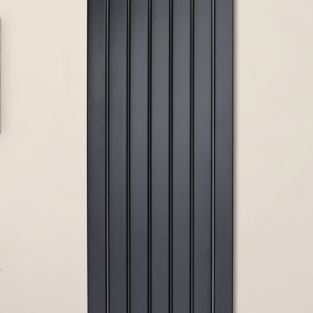 Radiador hidráulico de acero al carbono con acabado negro azabache compuesto por una serie de elementos verticales planos de 7x1,1 cm soldados a colectores horizontales de 3,5 cm de diámetro íntegramente fabricados en Italia con kit de fijación a la pared, válvula de ventilación y tapón ciego incluidos . Calidad, innovación y excelencia están en el corazón del proceso de producción de este producto, combinados con el carácter fundamental de la artesanía italiana . El objetivo es ofrecer soluciones capaces de satisfacer las necesidades y deseos de usuarios cada vez más atentos y exigentes. El radiador combina tecnología y presencia formal para convertirse en un verdadero objeto de diseño y una fuente de felicidad y placer estético.