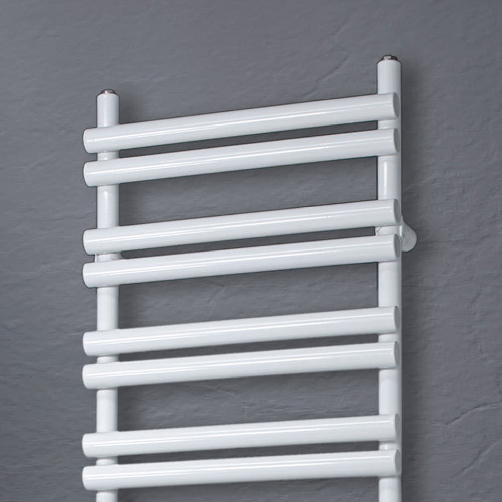 Secatoallas hidráulico de acero al carbono con acabado blanco puro brillante compuesto por una serie de elementos horizontales de 3,5 cm de diámetro soldados a colectores verticales de 3,5 cm de diámetro, íntegramente fabricado en Italia con kit de fijación a la pared, válvula de ventilación y tapón ciego. incluido . Profesionalidad, conocimiento y búsqueda de la innovación son los valores que se han perseguido para crear este producto en una fábrica de Treviso, a pocos kilómetros de Venecia, para garantizar un producto de calidad 100% Made in Italy. En este elemento diseño y funcionalidad se unen para ofrecer un mueble no sólo bonito sino también utilizable y eficiente.