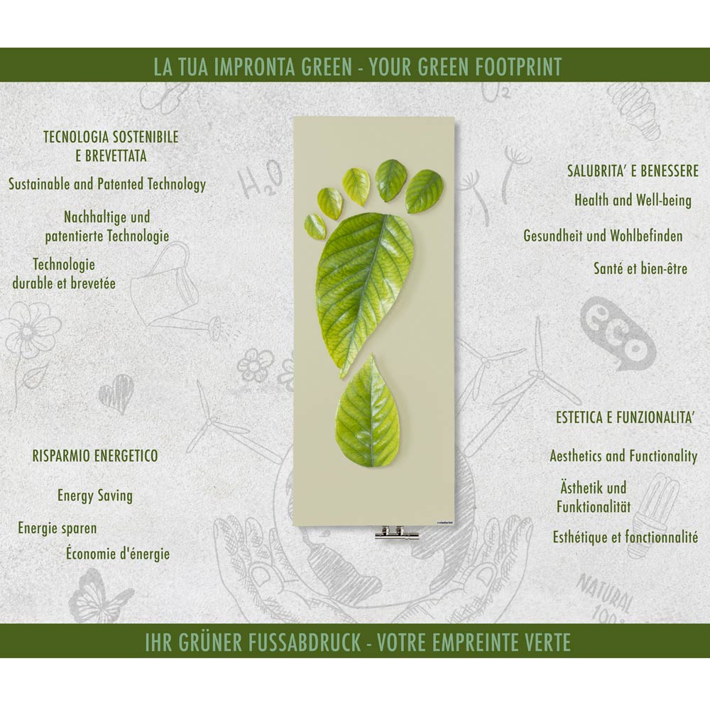 Este radiador de diseño está equipado con un sistema de calefacción que emite calor por radiación , distribuyéndolo uniformemente por todos los espacios de la casa con cero emisiones . Este proceso permite tener una temperatura ambiente confortable y controlada que garantiza un aire particularmente limpio sin levantar polvo.