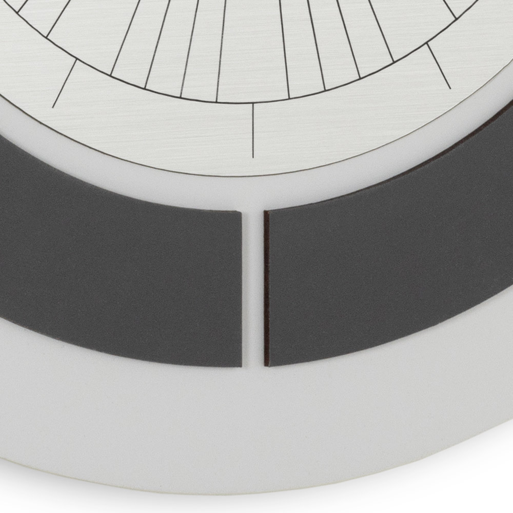 Su refinado diseño geométrico, de líneas limpias y contrastes de color, lo hace perfecto para entornos modernos y esenciales. La forma ovalada, confiere originalidad a la pared, mientras que el grafismo interior asimétrico recuerda la estética de la arquitectura y el arte contemporáneo. Diseño geométrico.