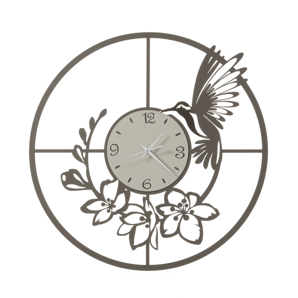 Reloj íntegramente en hierro de 3 agujas, Made in Italy. Este artículo minimalista con relieve de colibrí es elegancia en su forma más simple . El colibrí añade un toque de belleza y delicadeza a la esfera, tiene una forma cuidadosa y aporta movimiento y vida al reloj. Al colibrí se le asignan diferentes significados, basta pensar en el movimiento de las alas que simbolizan el infinito, el carácter cíclico y la eternidad , pero también la invitación a dejar atrás el pasado para dejar espacio a un nuevo ciclo de vida.
