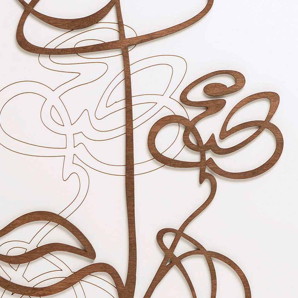 Reloj de pared cuadrado en madera blanca con decoración floral en madera oscura, diseño moderno hecho en Italia.