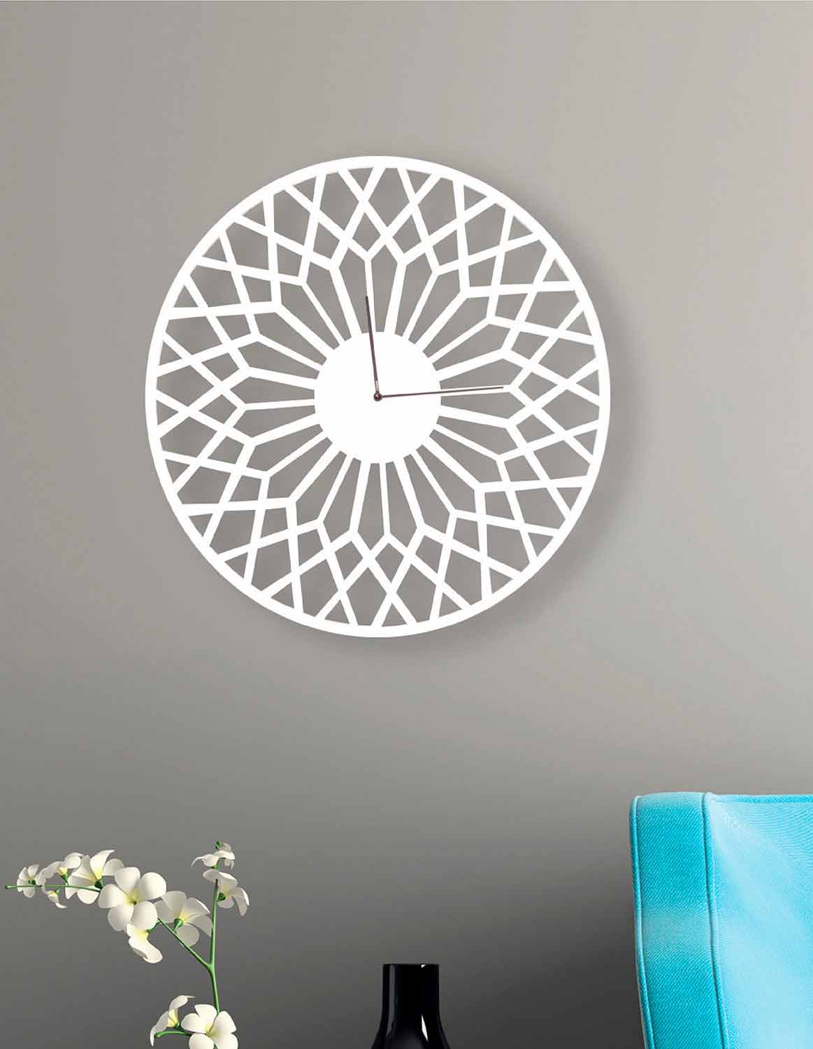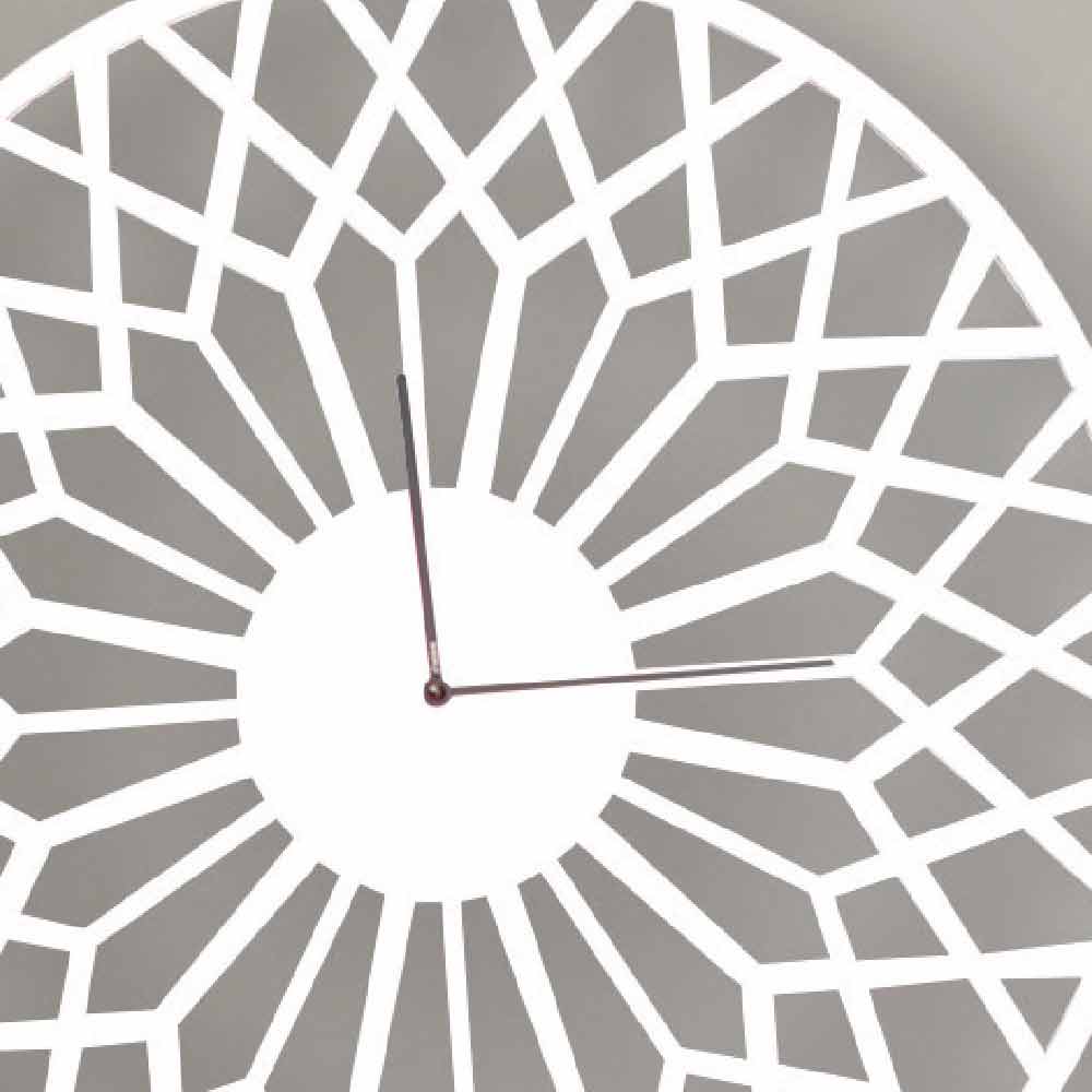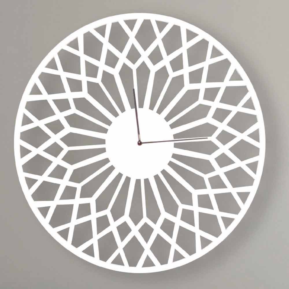 Gran reloj de pared de diseño redondo en madera blanca, rosa o de tórtola fabricado en Italia.