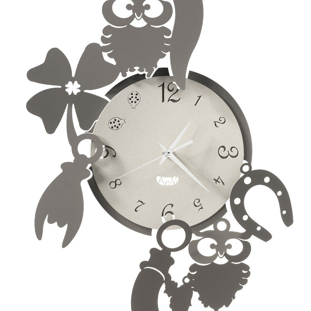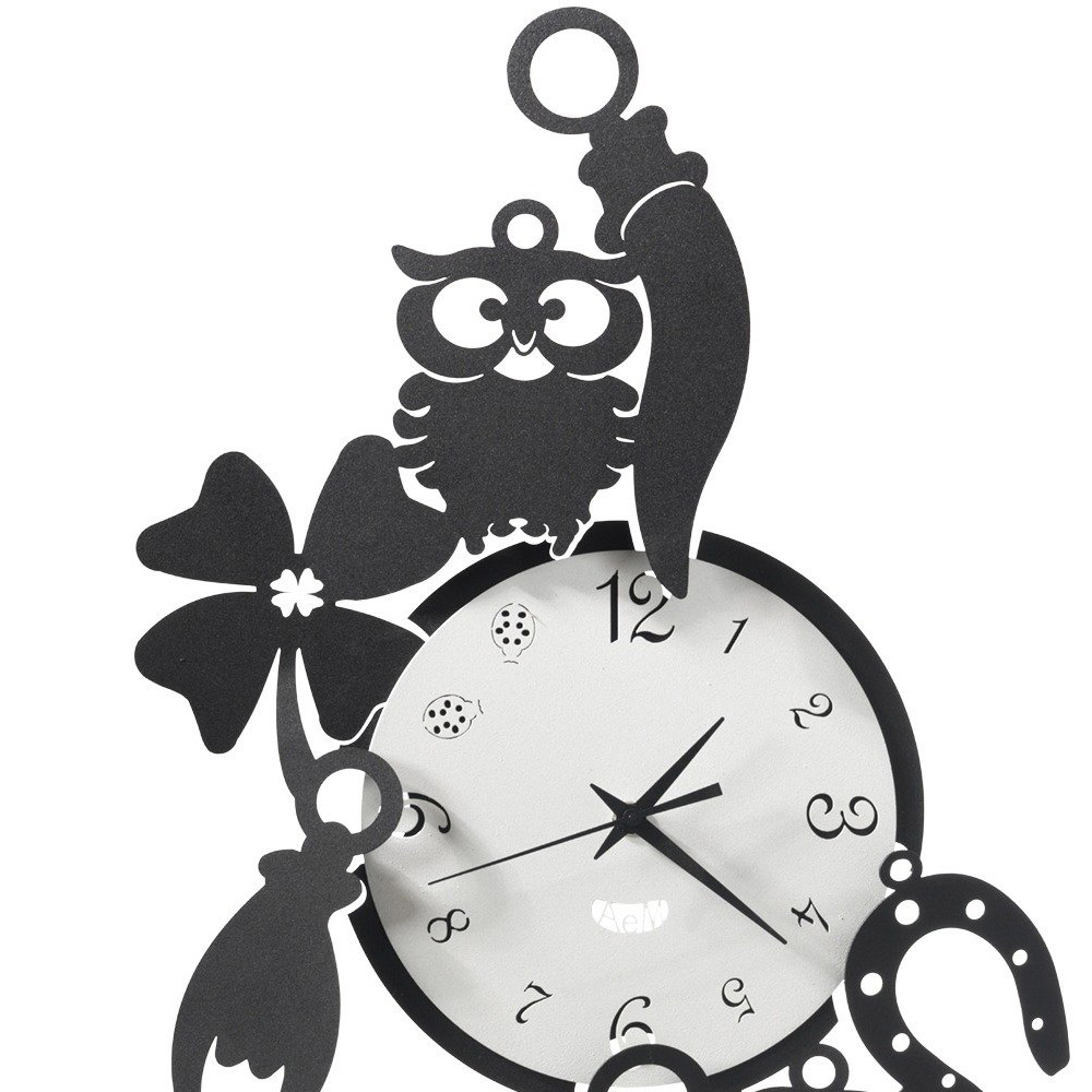 Reloj de pared de hierro de diseño redondo con amuletos de la suerte en 3 acabados fabricado en Italia.