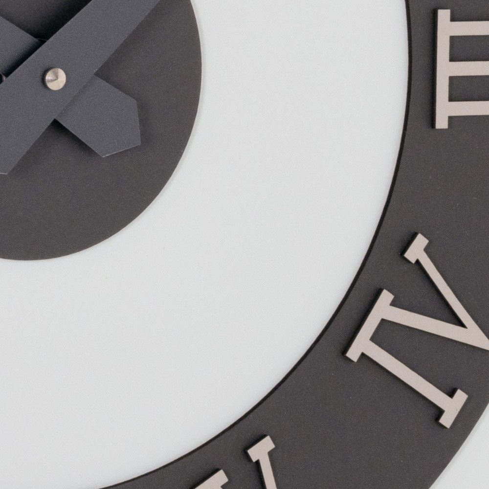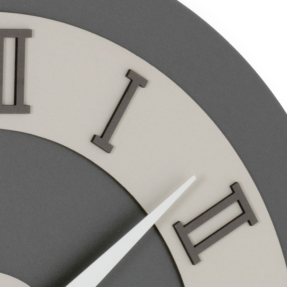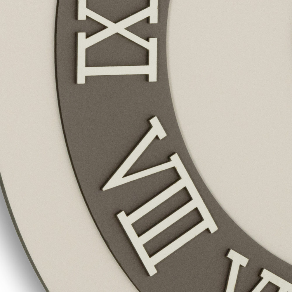 El soporte de MDF laminado con láminas de polipropileno presenta texturas buscadas que crean contrastes visuales únicos y tonos modernos, perfectos para ambientes elegantes y con carácter. ¿El verdadero toque distintivo? Números romanos en relieve de lino prensado en capas, obtenido a partir de materias primas naturales sostenibles con el medio ambiente: una superficie sólida, agradable al tacto e increíblemente refinada.
