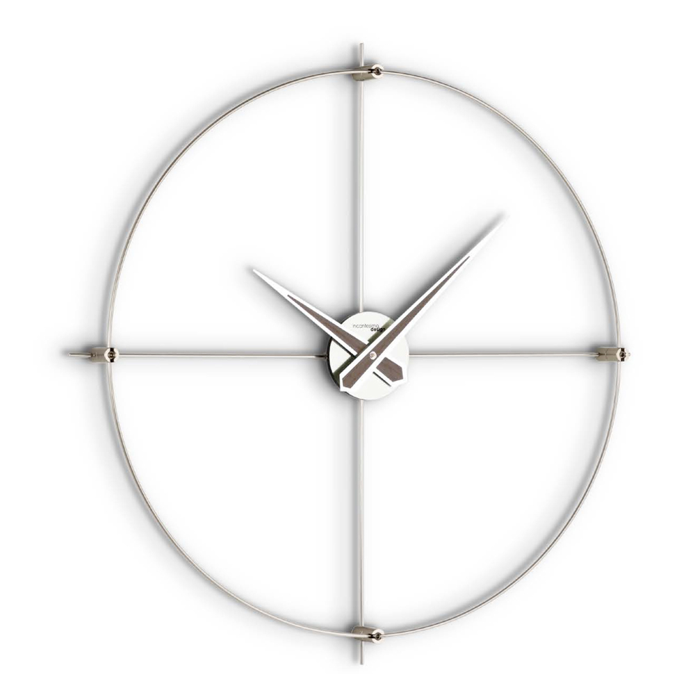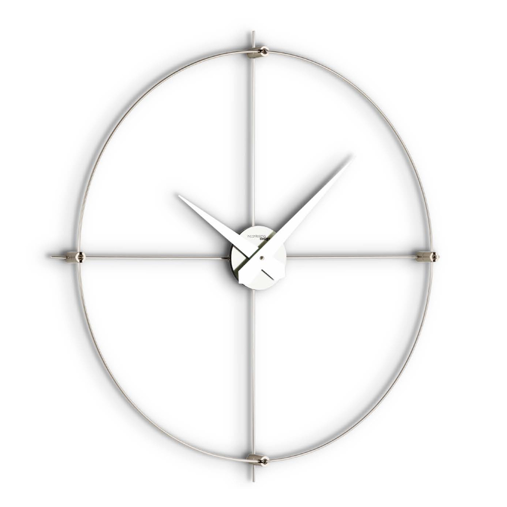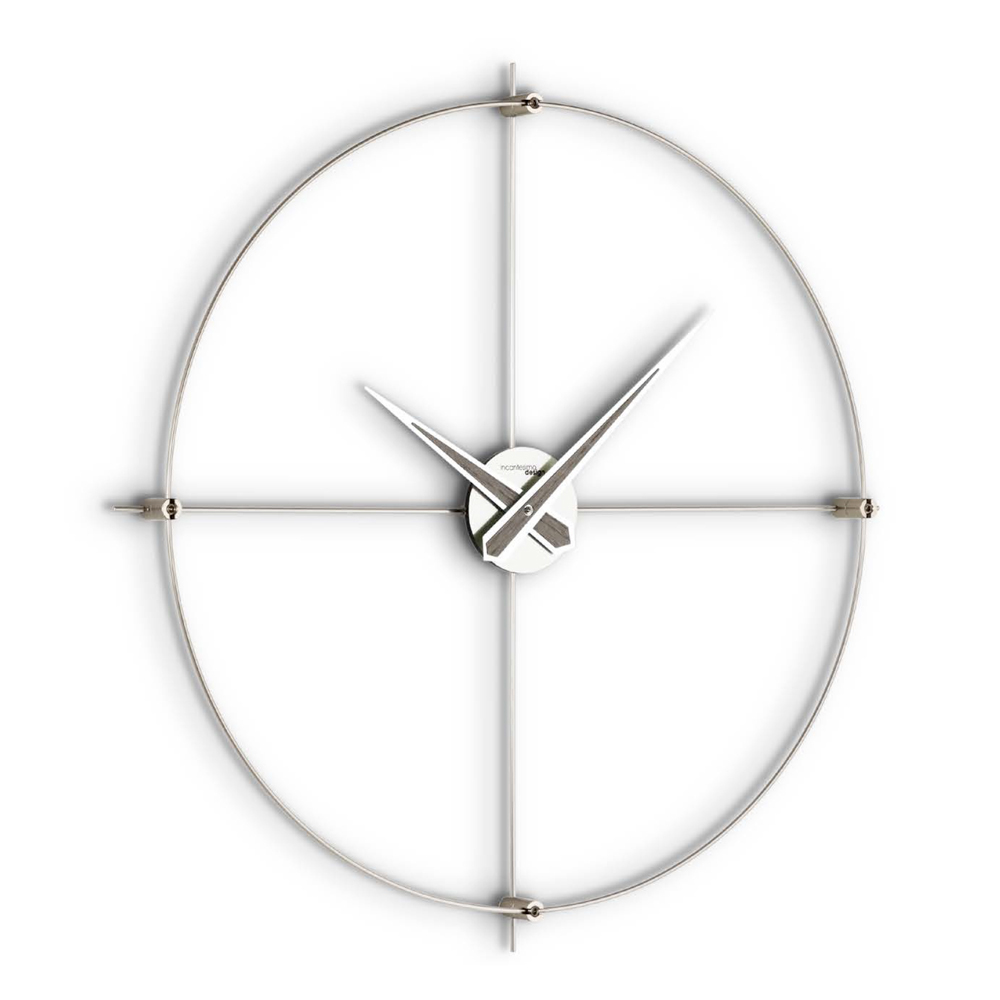 Este reloj de pared encarna la quintaesencia del minimalismo moderno . Su diseño esencial, con estructura de acero , llama la atención con elegancia y sencillez. Las manos alargadas se extienden con gracia, tocando los bordes del círculo y ofreciendo una lectura clara y directa del tiempo .