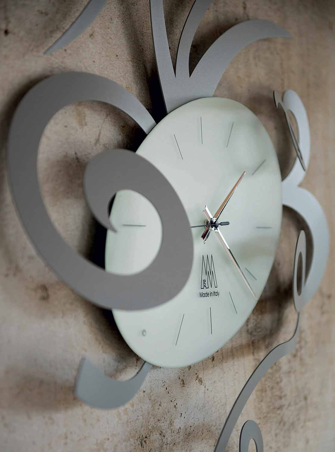 Reloj de pared de estilo moderno hecho a mano en Italia en hierro negro, aluminio o rojo.