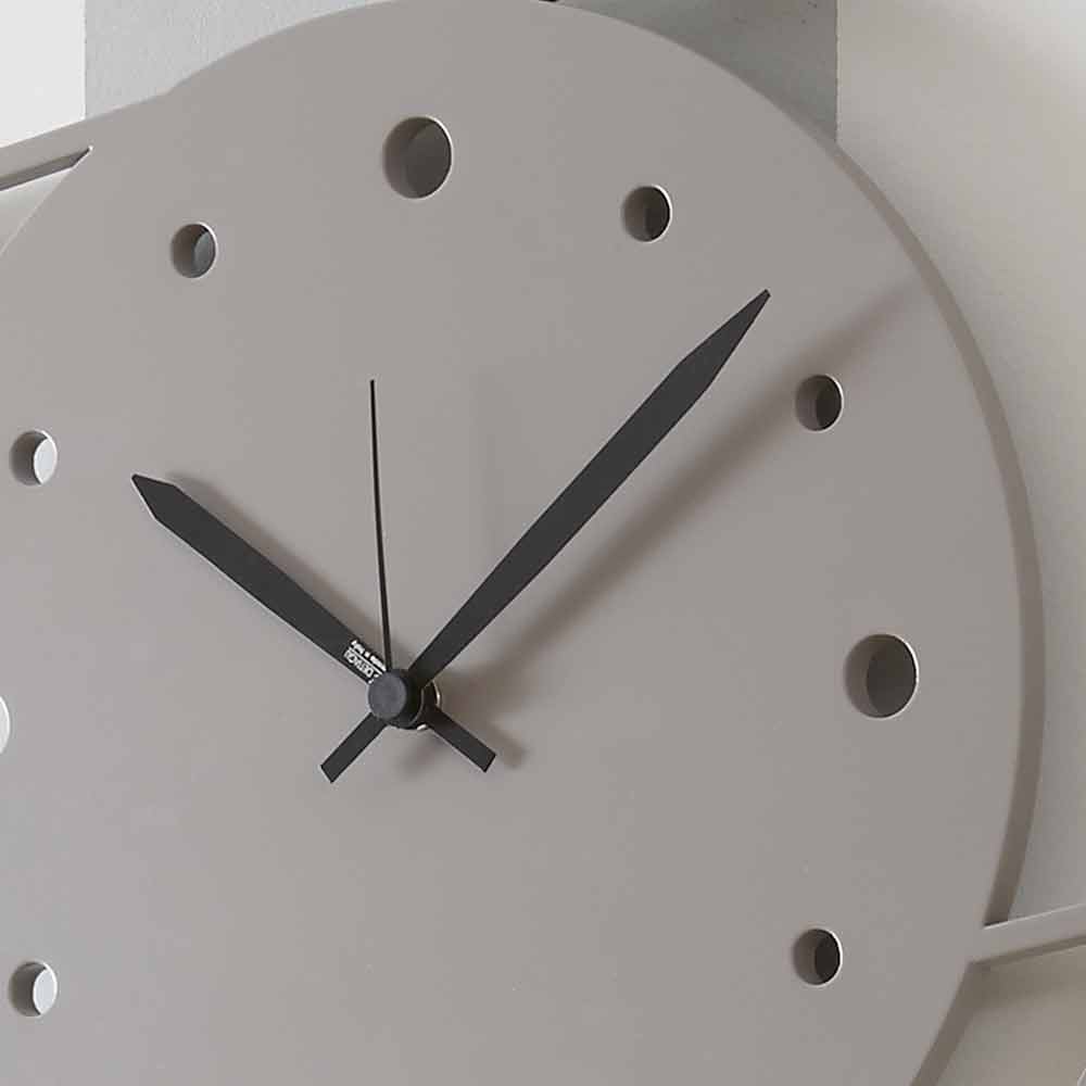 Reloj de pared grande y original, de diseño redondo y moderno con pájaros, en madera blanca, gris pardo o gris fabricado en Italia.