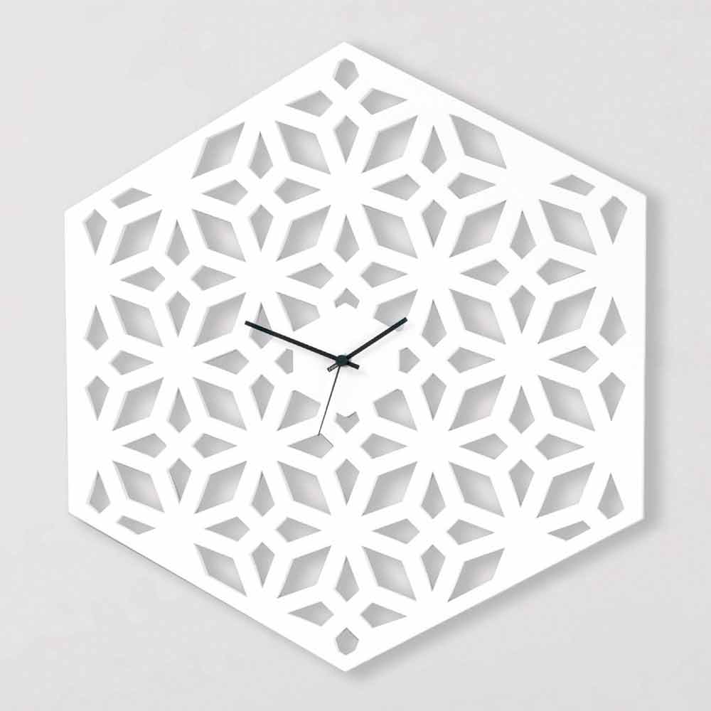 Gran reloj de pared hexagonal de diseño moderno en madera de color made in Italy.