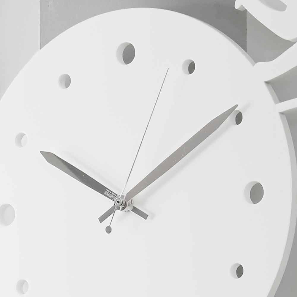 Reloj de pared grande y original con un diseño redondo moderno, en madera blanca, negra o gris, con gatitos, hecho en Italia.