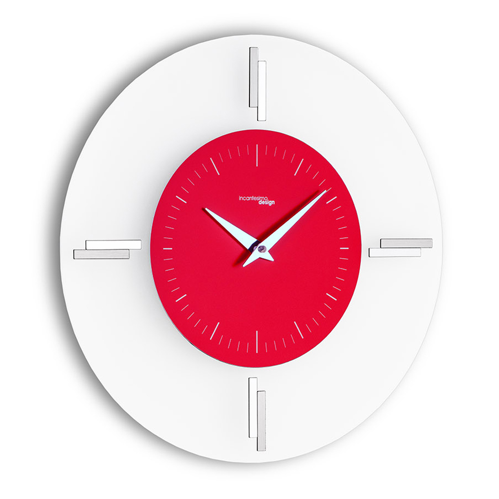 Reloj de pared redondo de metacrilato y aluminio fabricado en Italia.