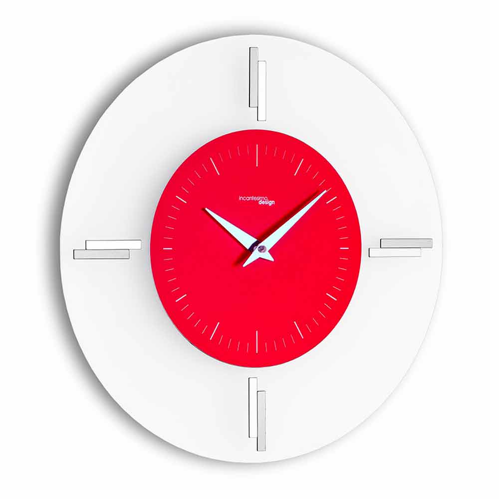 Reloj de pared redondo en metacrilato y aluminio fabricado en Italia.