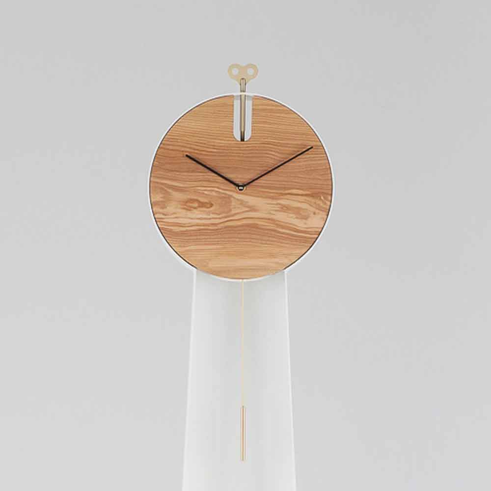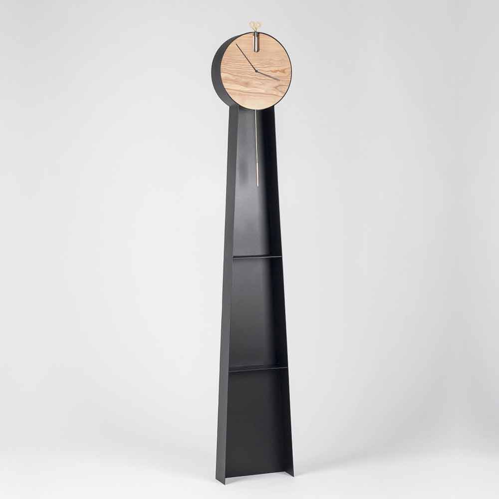 Reloj de péndulo de suelo fabricado en acero y fresno con detalles en latón Made in Italy.