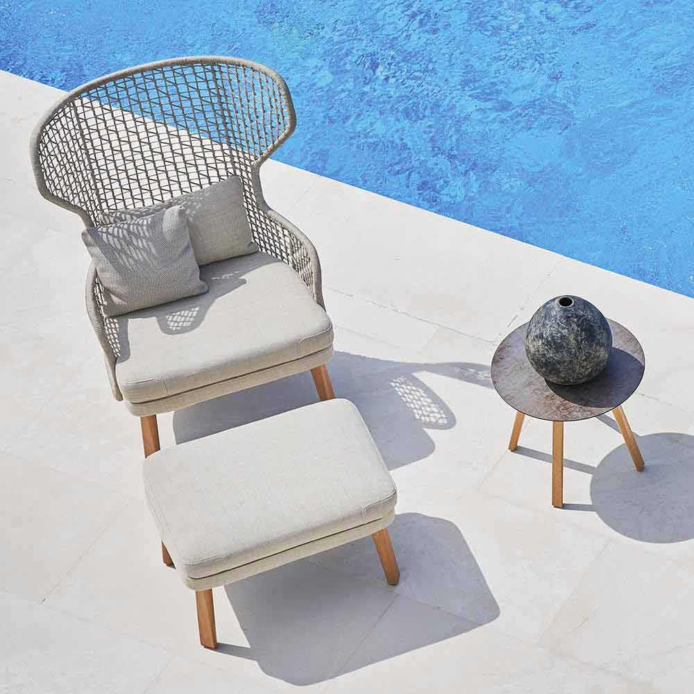 Reposapiés exterior Varaschin Emma en tejido tapizado y madera de iroko