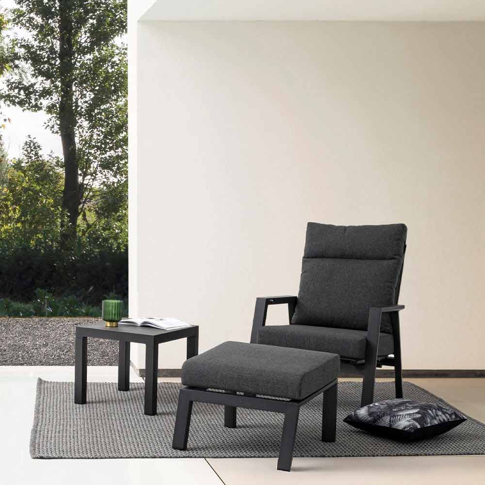 Puf reposapiés en aluminio pintado con cojín amovible.