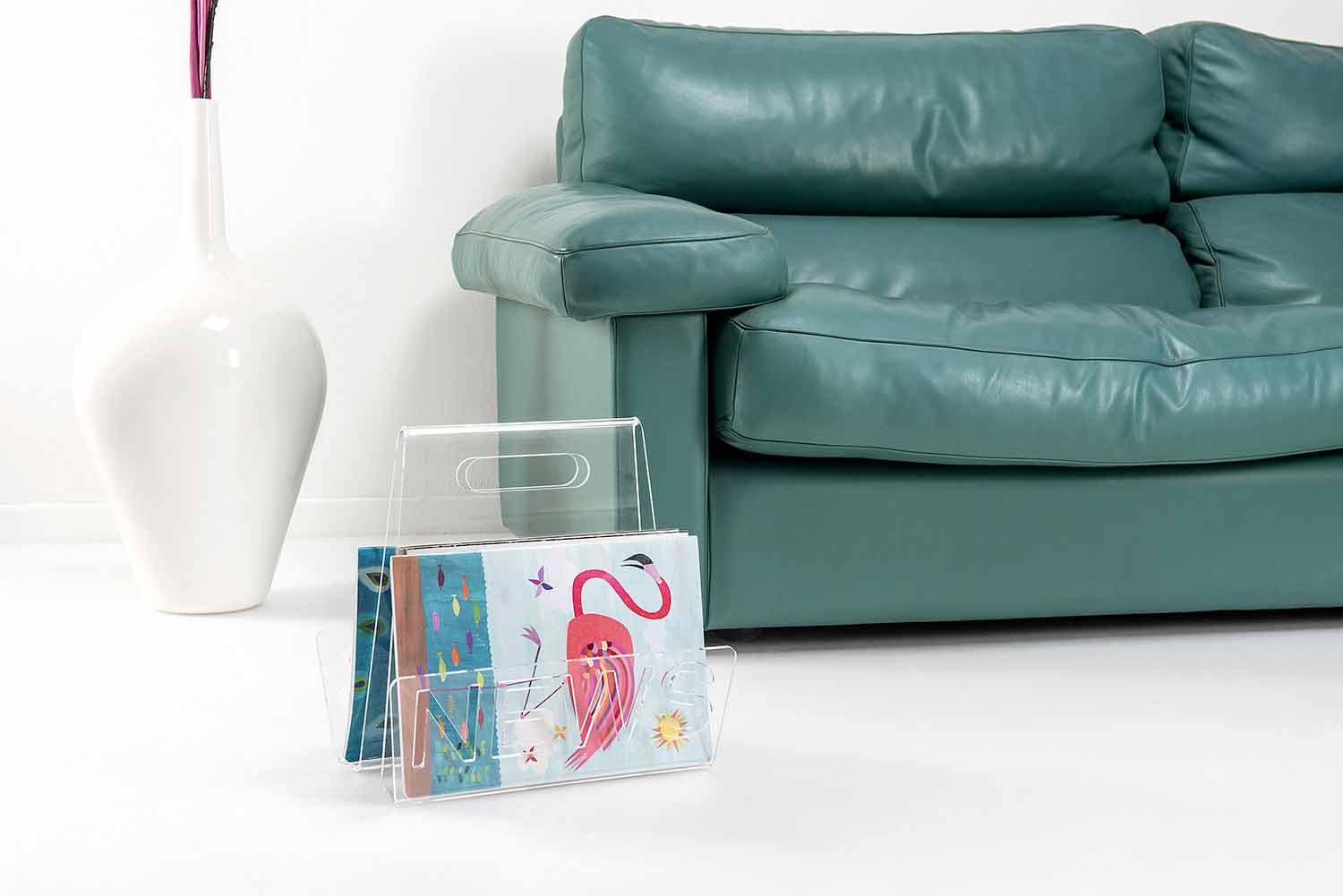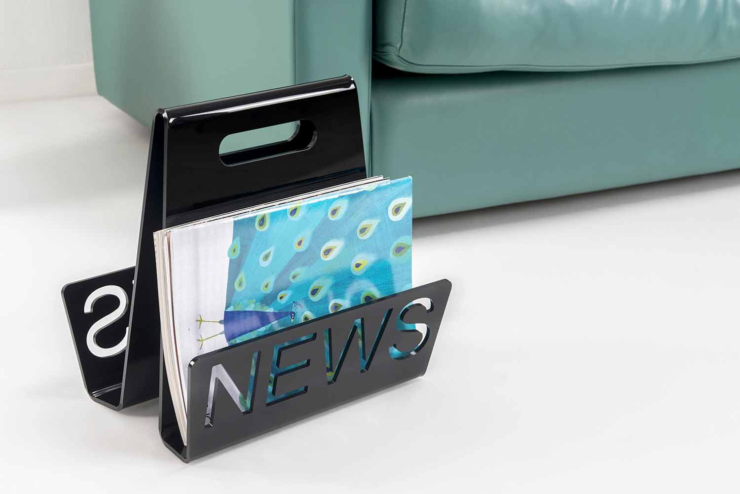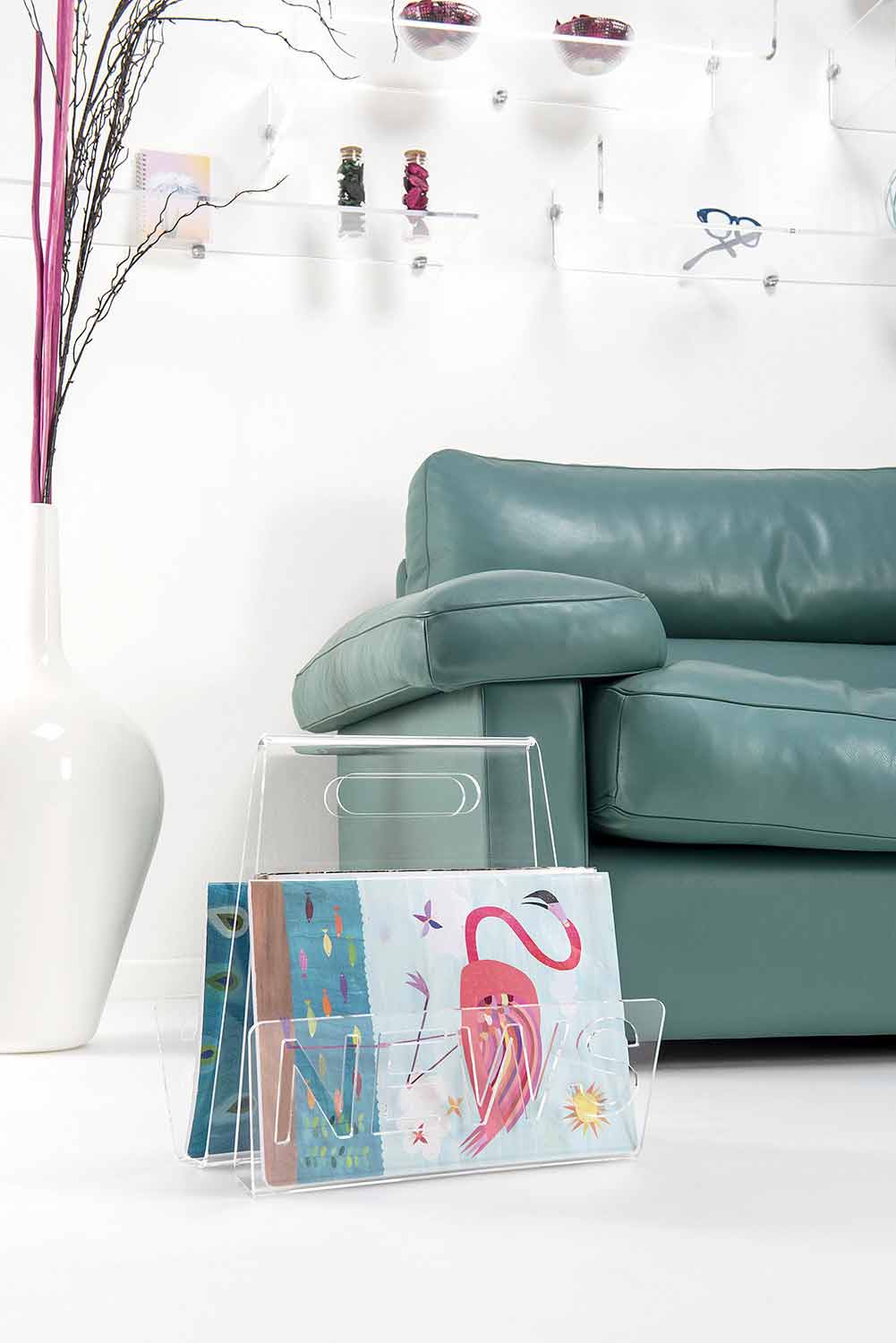 Revistero en plexiglás negro o transparente de diseño moderno, hecho a mano en Italia.