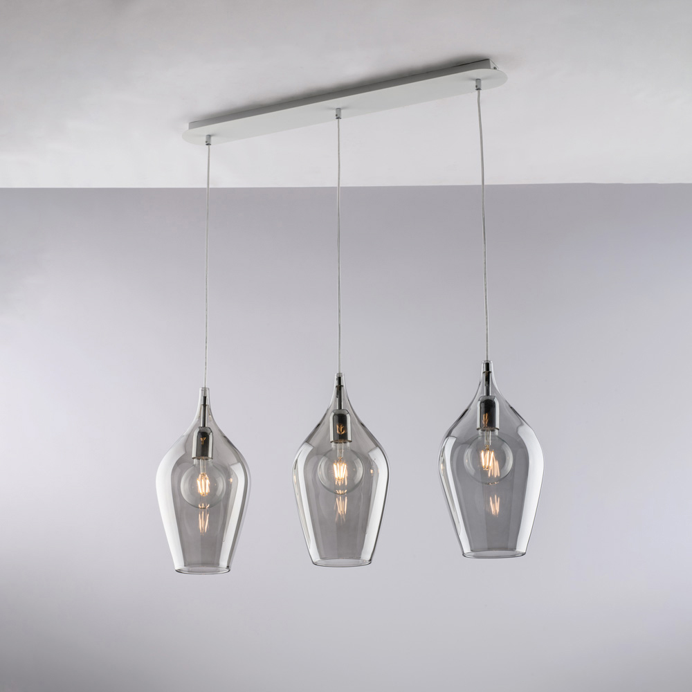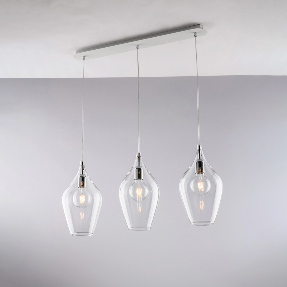 Disponible en acabados transparente , ámbar o gris , esta lámpara colgante te permite personalizar la atmósfera de tu espacio: brillante y minimalista en la versión transparente, cálida y envolvente en ámbar, sobria y sofisticada en gris. Es perfecta para islas de cocina , mesas de comedor , mostradores , espacios abiertos y entornos de diseño .