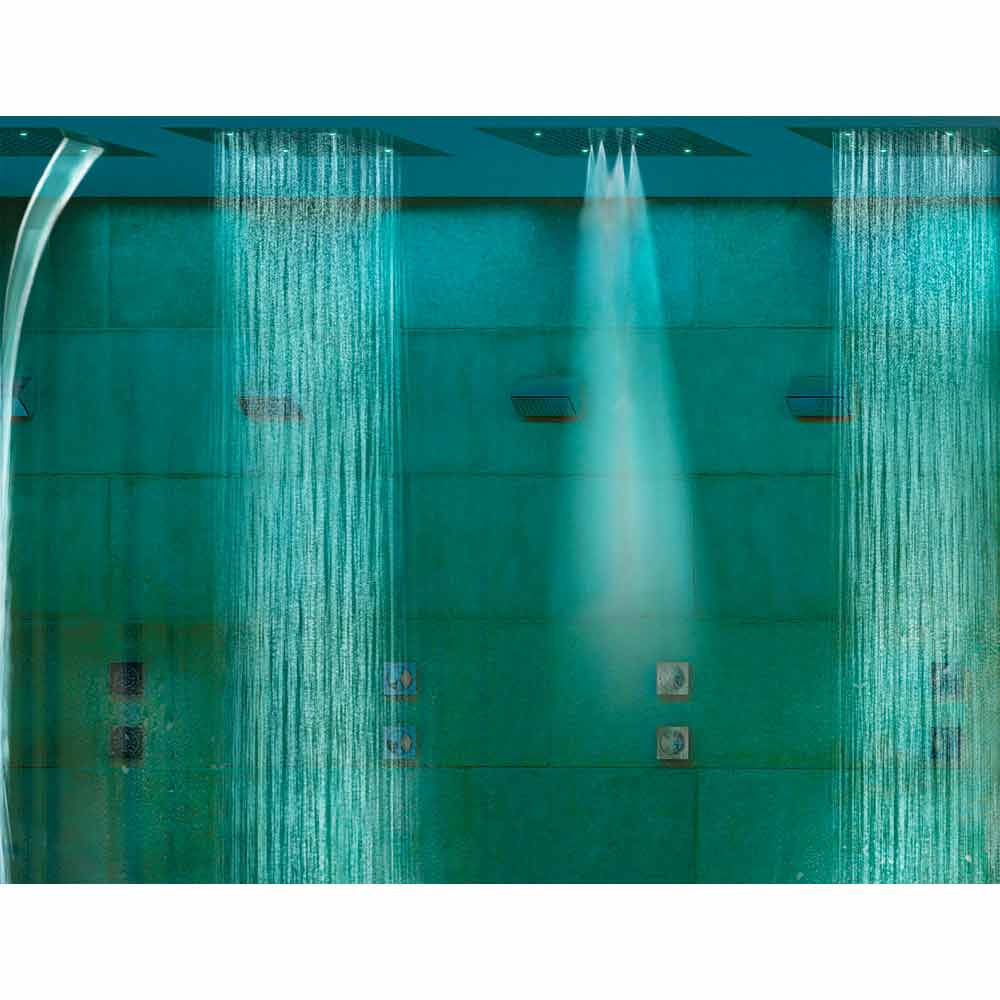 La gama Dream de Bossini multiplica sus funciones ofreciendo un rociador con dos tipos de chorro distintos: además del chorro tradicional de lluvia, es posible seleccionar el chorro de cascada, la función peine o el chorro nebulizador. Todos los rociadores Dream están dotados de un dispositivo de descarga del agua incorporado en el centro del difusor que evita que el agua se quede estancada en el interior del rociador. Este es un sistema certificado por Bossini.