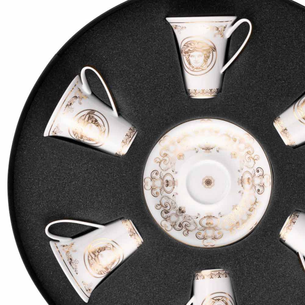 Juego de tazas de espresso de porcelana Medusa Gala de Versace de 6 piezas