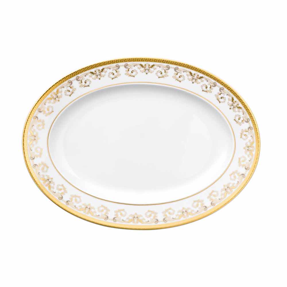 Plato ovalado de porcelana Rosenthal Versace Medusa Gala Gold de 34 cm de diseño