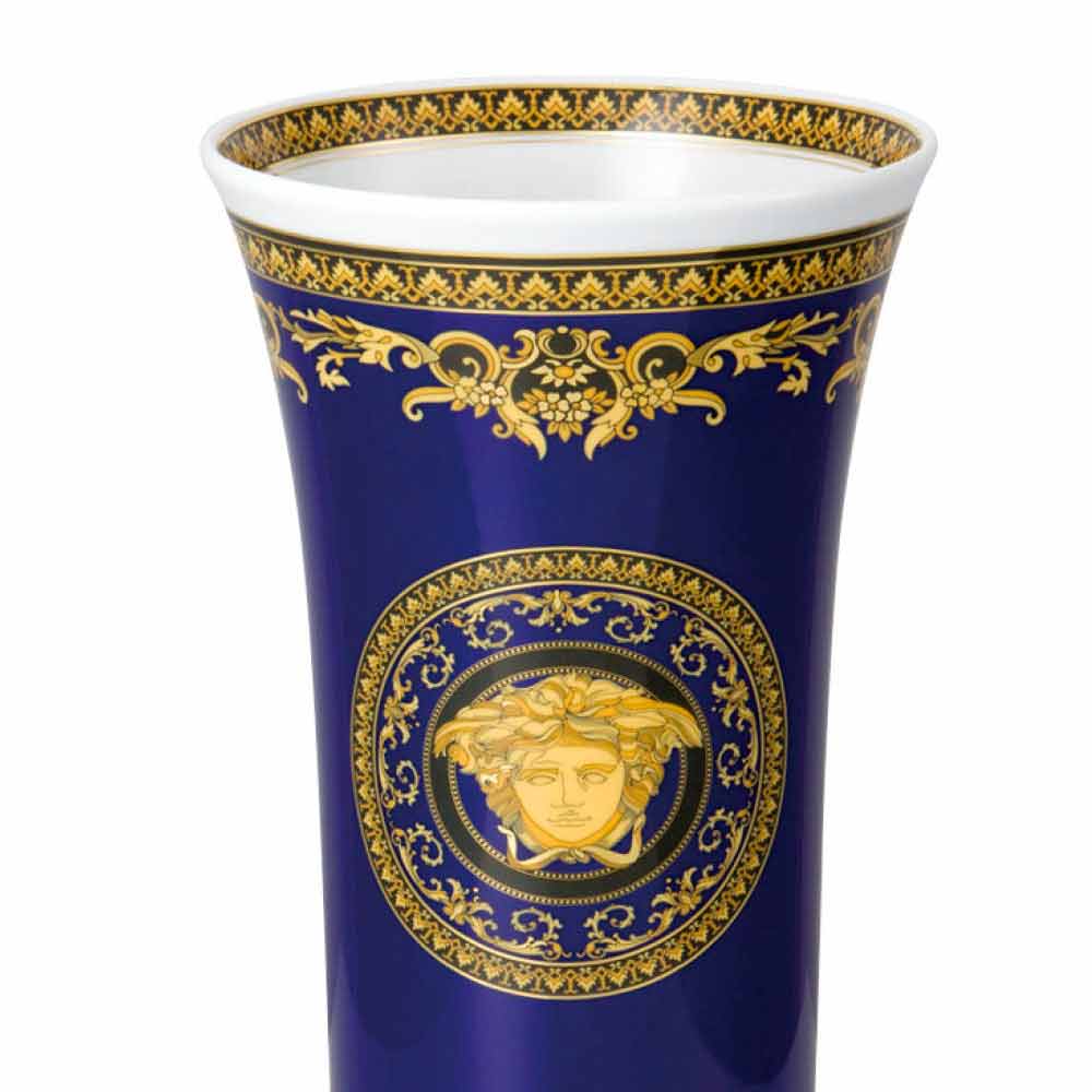 El fabuloso jarrón de diseño de 26 cm de Versace es parte de la elegante colección moderna que, combinada con un glamour fascinante y refinado, recuerda épocas pasadas y se expresa en el tono brillante del azul y toma el nombre de Medusa Blue.