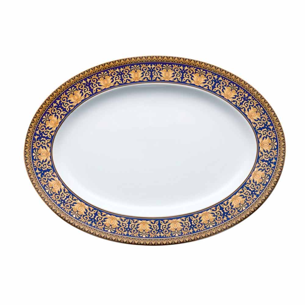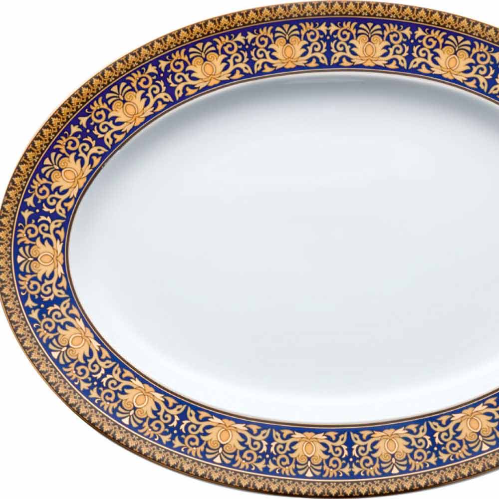 El fantástico y moderno plato ovalado de 34x24,5cm diseñado por Versace es parte de la elegante colección moderna que, combinada con un glamour fascinante y refinado, recuerda épocas pasadas y se expresa en el brillante tono del azul y toma el nombre de Medusa Blue.