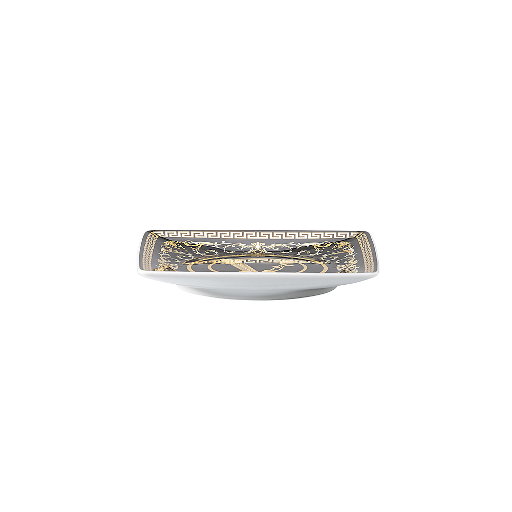 Las tazas cuadradas planas Virtus Gala de Versace son la combinación perfecta de diseño sofisticado y funcionalidad. Fabricadas en porcelana fina , destacan por su elegante fondo brillante adornado con detalles dorados de estilo barroco, que incluyen el icónico símbolo "V" de Versace, un emblema de estilo y lujo atemporal .