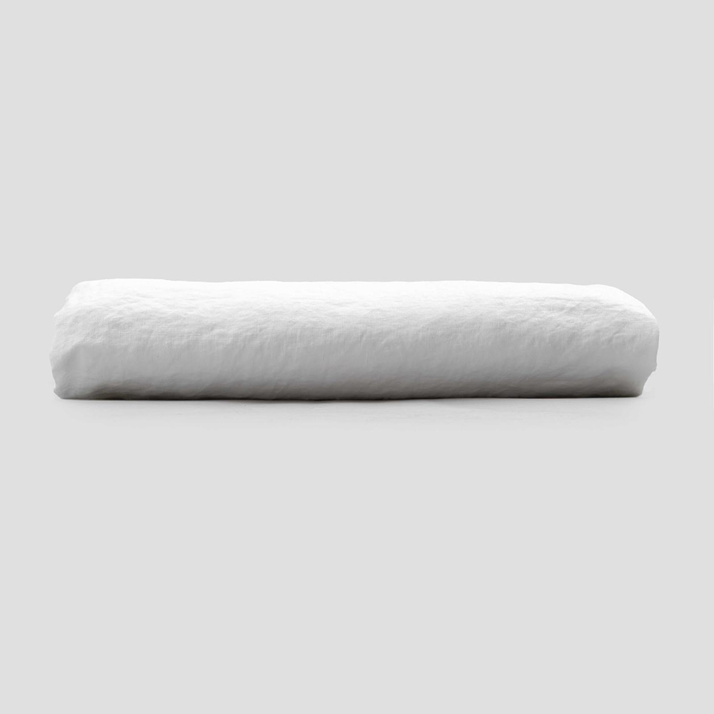 El valor de la tradición se combina con el estilo de vida moderno en esta sábana bajera para cama doble de lino blanco claro.