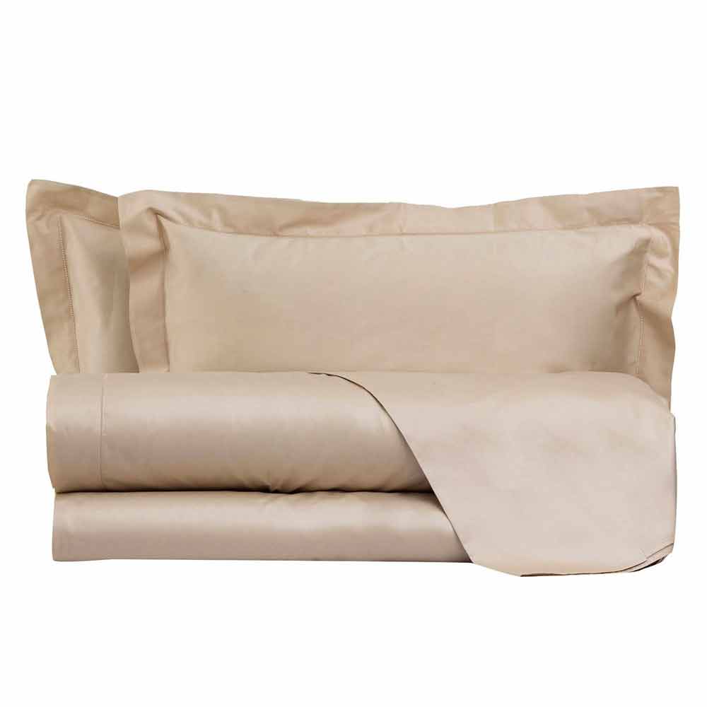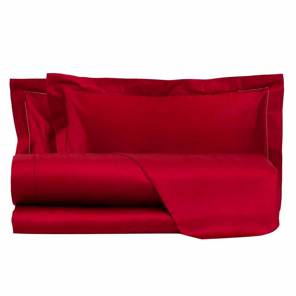 Completo con sábanas lisas de diferentes colores para cama de matrimonio de diseño en satén 300 TC made in Italy.