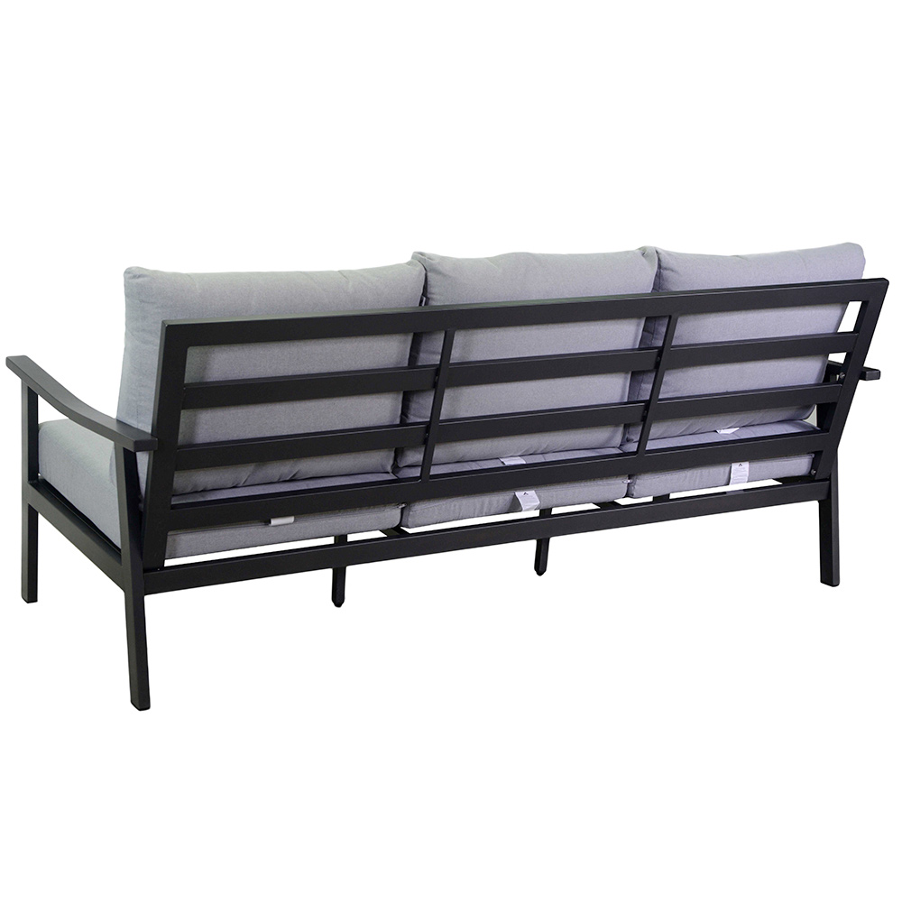 Descubra la elegancia y el confort atemporales con nuestro salón de aluminio antracita . Cada pieza está diseñada para ofrecer relajación absoluta gracias a los cojines ultra suaves en tejido gris claro que invitan a momentos de puro bienestar. El robusto marco de aluminio garantiza durabilidad y estabilidad, ideal para el uso diario al aire libre.