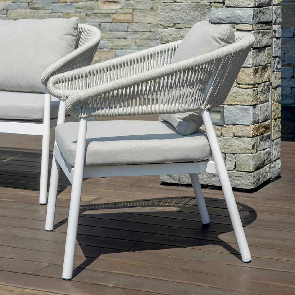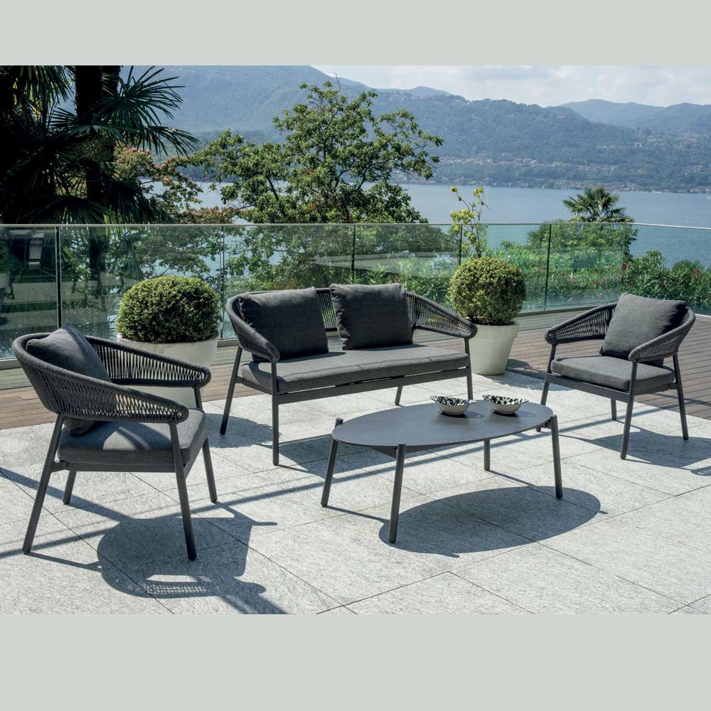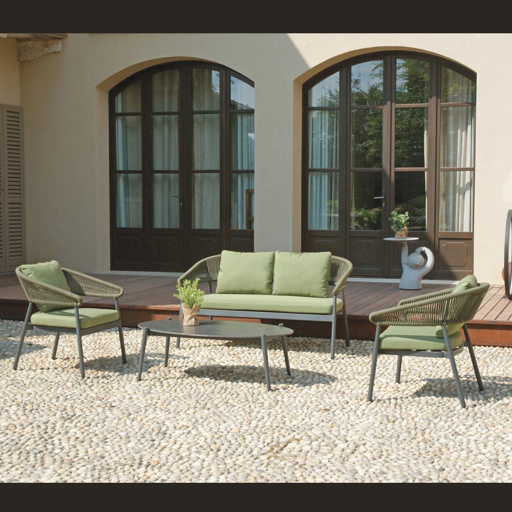 Este salón de jardín es la solución ideal para aquellos que buscan un equilibrio perfecto entre elegancia y confort. Compuesto por sillones y sofá con cojines tapizados y una robusta mesa de centro, este conjunto es el complemento ideal para disfrutar de momentos de relax al aire libre. El diseño moderno y las líneas limpias encajan perfectamente en cualquier entorno de exterior, desde patios espaciosos hasta jardines acogedores.