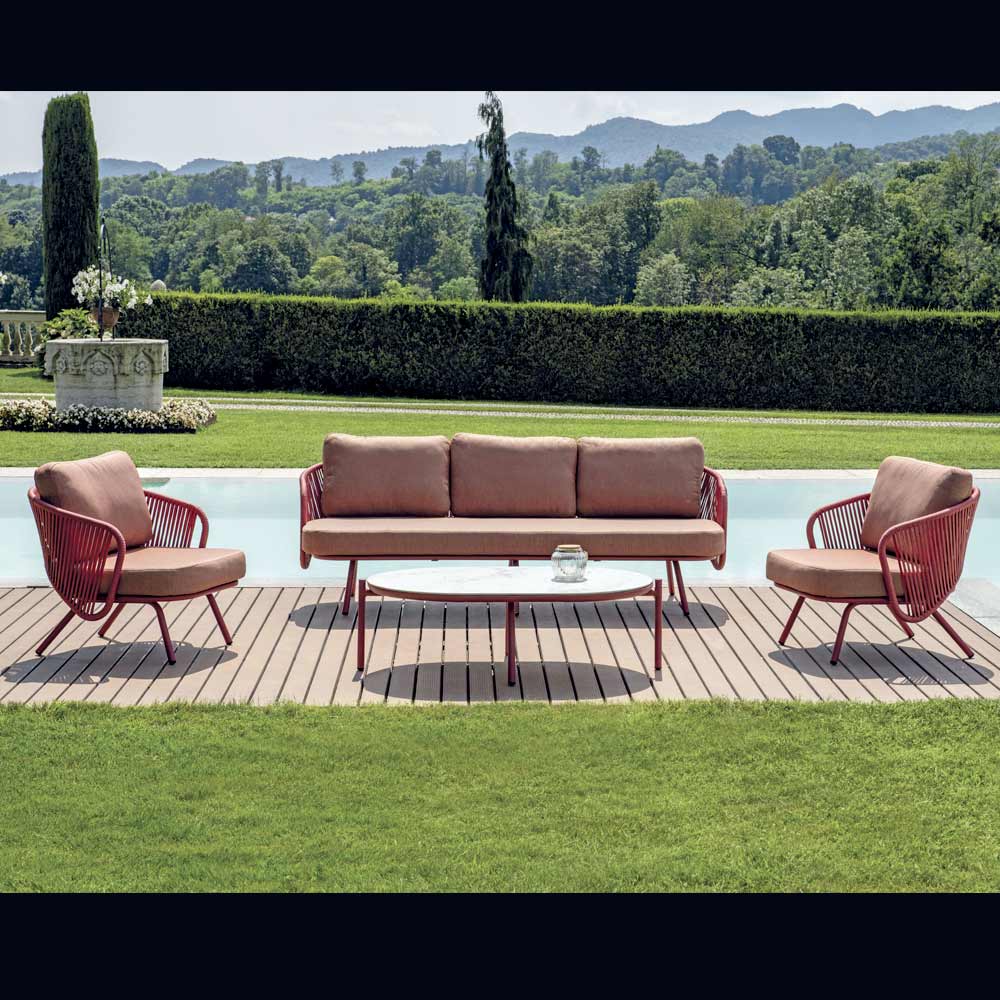 Este salón de jardín es la solución ideal para aquellos que buscan un equilibrio perfecto entre elegancia y confort. Compuesto por sillones y sofá con cojines tapizados y una robusta mesa de centro, este conjunto es el complemento ideal para disfrutar de momentos de relax al aire libre. El diseño moderno y las líneas limpias encajan perfectamente en cualquier entorno de exterior, desde patios espaciosos hasta jardines acogedores.