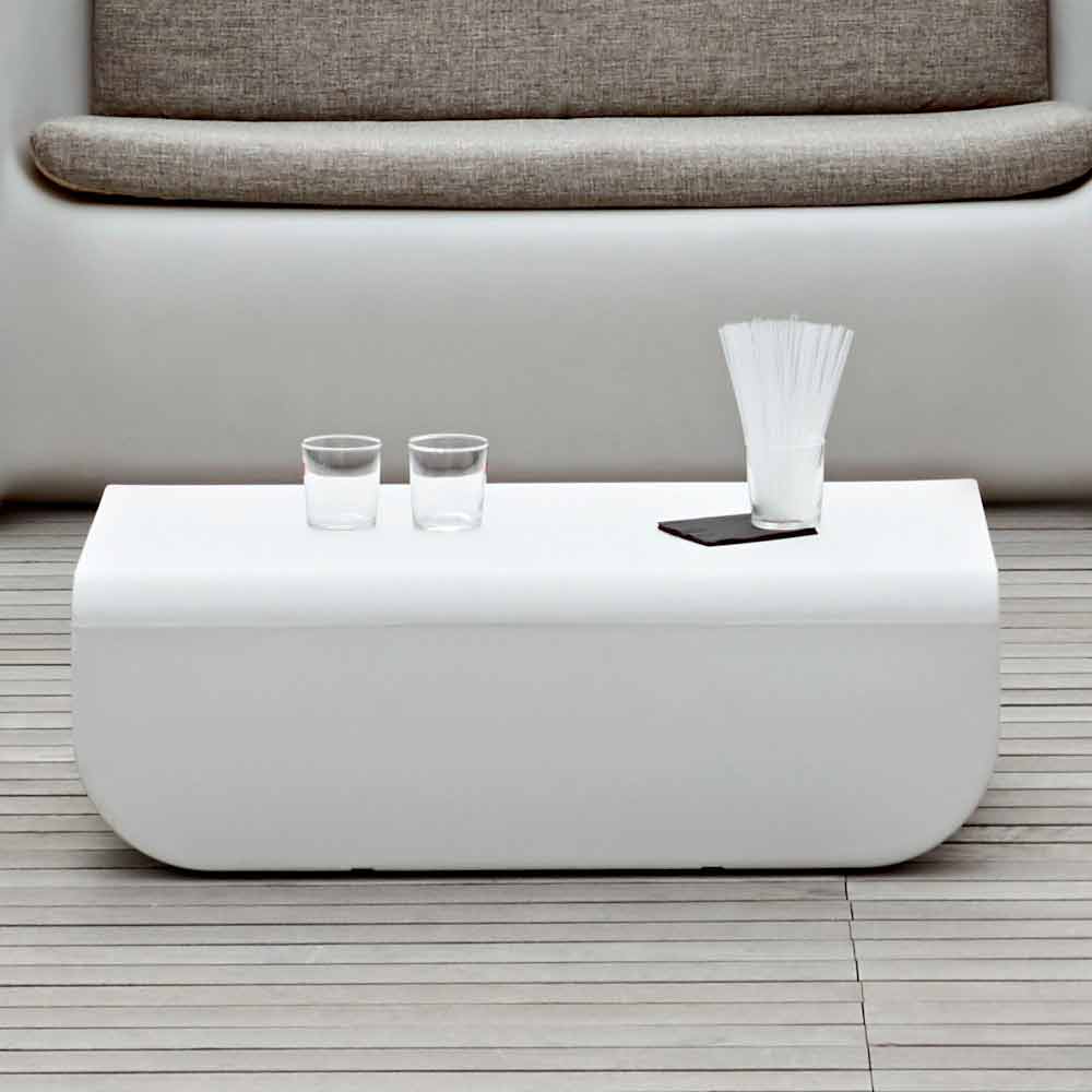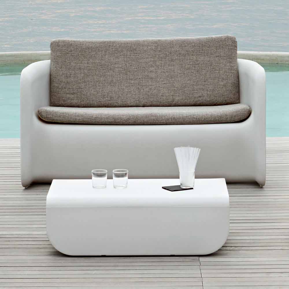 Salón de jardín moderno, sofá y mesa de centro de diseño en polyeasy made in Italy.