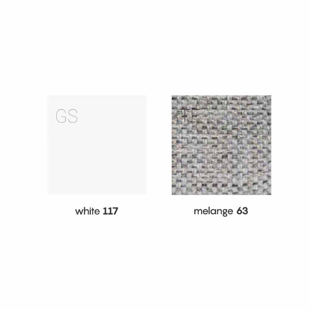 Fabricado en Italia con una estructura Poeasy probada para uso en exteriores; en acabado gofrado con serigrafía rotacional en blanco. Acolchado en Dryfeel transpirable, drenante, antibacteriano y antimoho con un secado más rápido que otros acolchados. Revestimiento en tejido gris jaspeado desenfundable e hidrofugado.