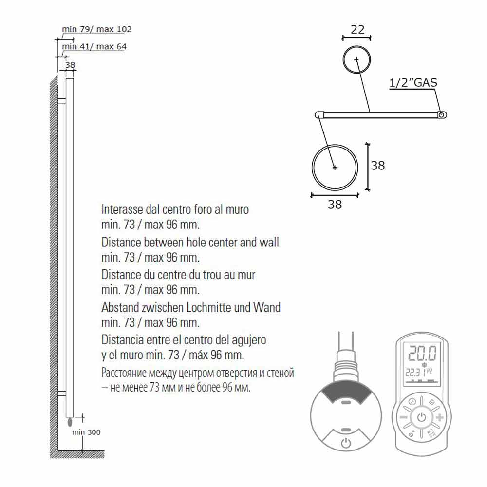 Bajo pedido están disponibles la resistencia eléctrica digital, la tapa de resistencias en el mismo acabado que el radiador o el kit termostato ambiente con programación semanal y receptor de radiofrecuencia para caja mural.