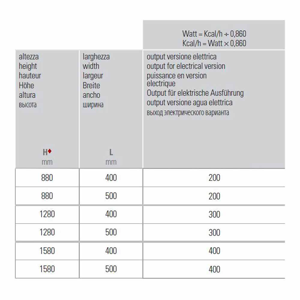 • H 1500 x L 400 x Inter. 362 mm x rendimiento w 400