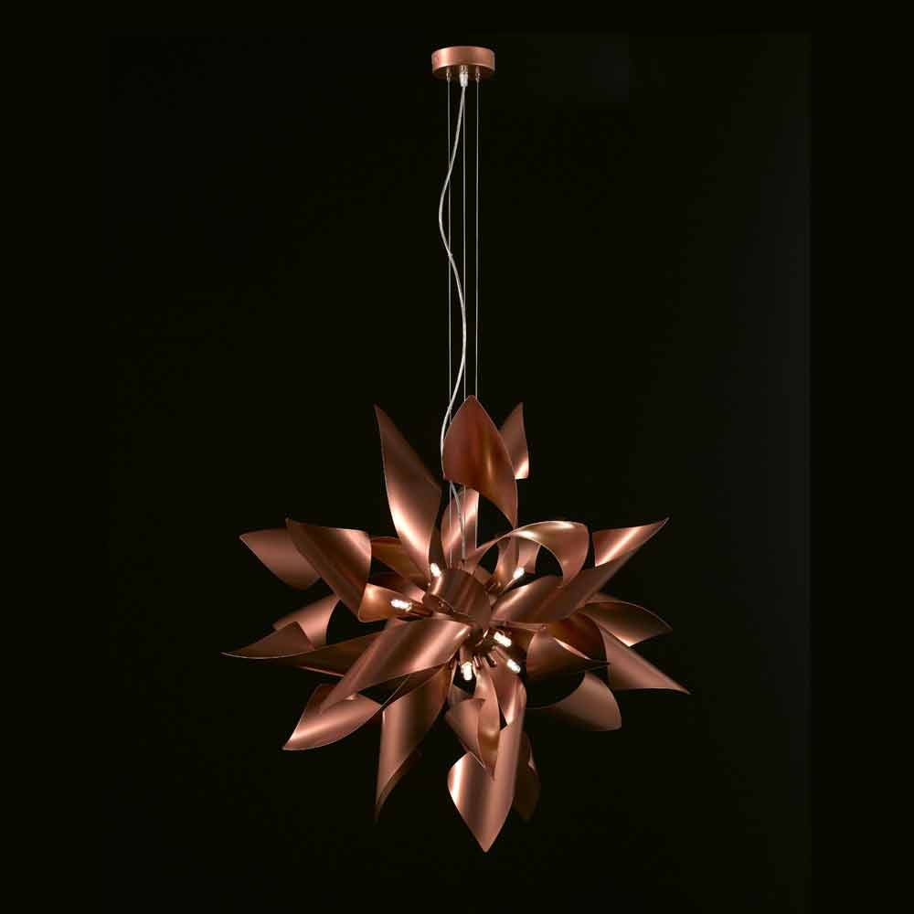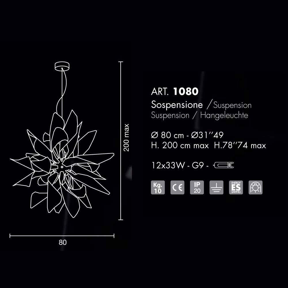 Selene jengibre lampda a la suspensión de metal fabricado en Italia Ø80 H200cm El jengibre es una colección de dimensiones importantes, capaces de enriquecer un ambiente con la presencia de sus muchas bandas que danzan en el aire. A pesar de estar hecho completamente de metal, la presencia de bombillas gratuitas asegura un excelente resultado brillante y está diseñado para la 'utilización de 12 33W bombillas - G9. NB bombillas no están incluidos.